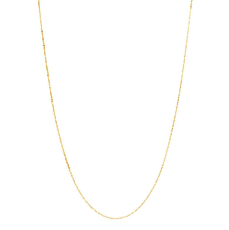 Discover the unmatched elegance of the ARMADANI Box Chain, a true testament to sophisticated style and expert craftsmanship. This exquisite chain is meticulously crafted in radiant 14 Karat Yellow Gold, offering a warm and inviting glow that effortlessly complements any attire. Its timeless box chain design not only enhances its versatility but also allows you to wear it alone for a subtle statement or layered with other pieces for a more elaborate look. Measuring 18 inches in length and 0.73mm in width, it rests gracefully against the neckline, adding a touch of luxury to any ensemble.