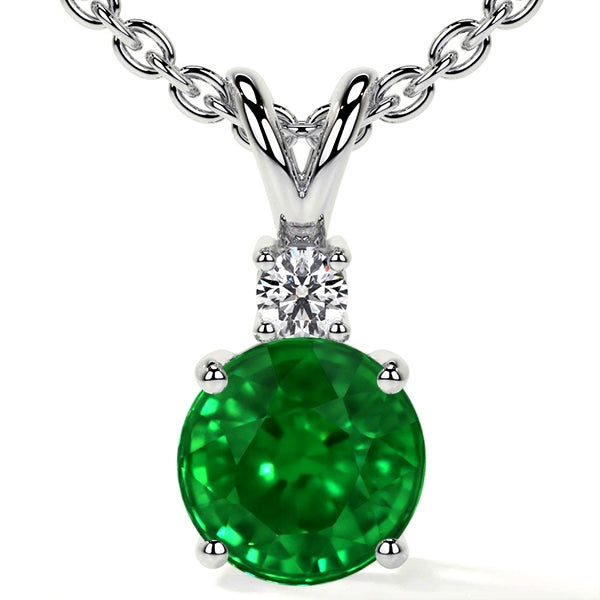 Discover the enchanting allure of the AFFORADABLE GEMS (NY) CORP. Color Gemstone Necklace, a masterpiece that seamlessly blends artistry with luxurious elegance. This remarkable piece features a vibrant 0.50-carat round emerald, complemented by a dazzling 0.03-carat round diamond. Each stone is carefully chosen for its exceptional quality and brilliance, promising to captivate with every glance. Set in opulent 14 Karat white gold, the necklace exudes a timeless charm that harmonizes classic sophistication with contemporary style. The 18-inch cable link chain, designed to combine comfort with elegance, is secured with a trusty lobster claw clasp, providing assurance with every wear. Priced at $3,495.00, this necklace represents extraordinary value, making it an ideal gift to celebrate personal milestones or a sophisticated addition to any jewelry collection. Whether you choose to wear it daily or reserve it for cherished occasions, this necklace invites you to indulge in the beauty of nature's finest creations. Visit our store today and let this exquisite piece become a cherished part of your jewelry ensemble.