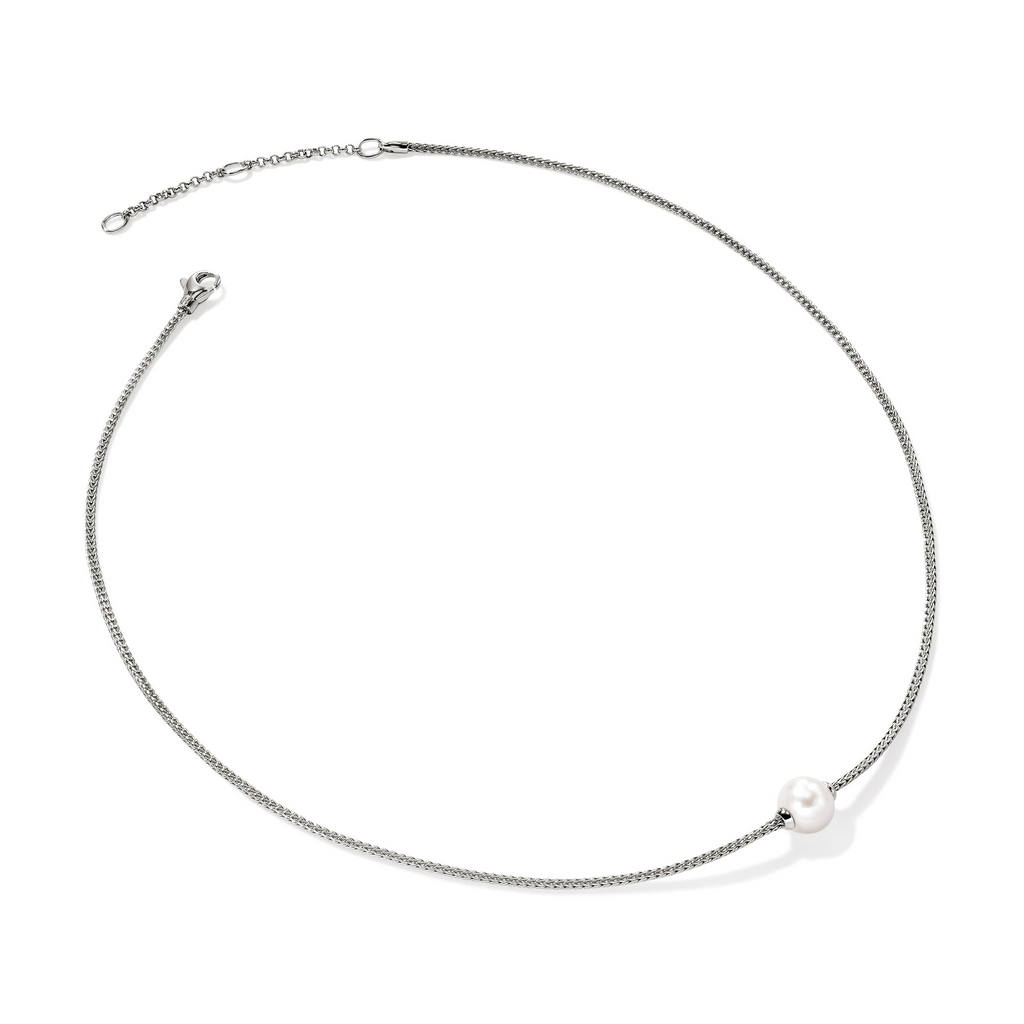 Color Gemstone Necklace in Sterling Silver White with 1 Cultured Pearl Chain Type: Designer Chain Chain Length: 18 Clasp Type: Lobster Claw Necklace Type: Pendant