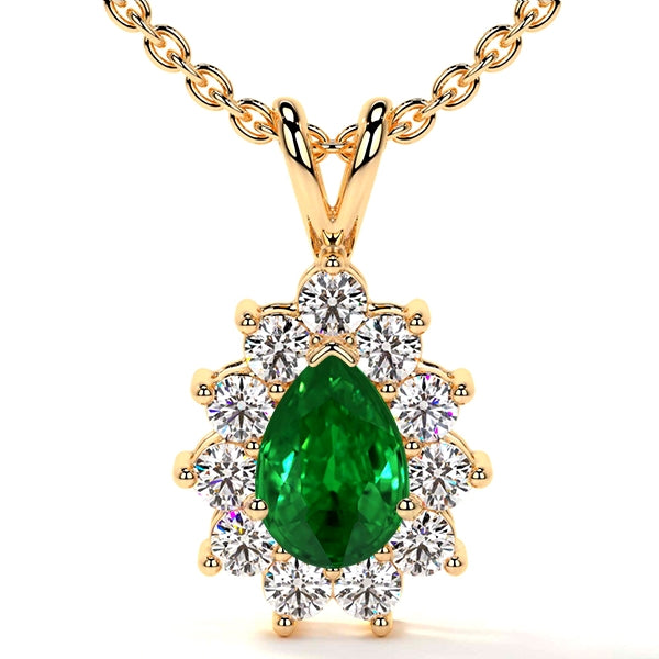 Discover the enchanting allure of the AFFORADABLE GEMS (NY) CORP. Color Gemstone Necklace, where elegance meets timeless beauty. This exquisite piece features a captivating 1.00 carat pear-shaped emerald, a symbol of enduring love and prosperity. Complementing the vibrant emerald are 15 shimmering round natural diamonds, totaling 0.28 carats, each one reflecting light with unmatched brilliance. Expertly crafted from 14 karat yellow gold, the necklace exudes luxury and sophistication. The 18-inch cable link chain offers a graceful drape, secured by a dependable lobster claw clasp for comfort and security.