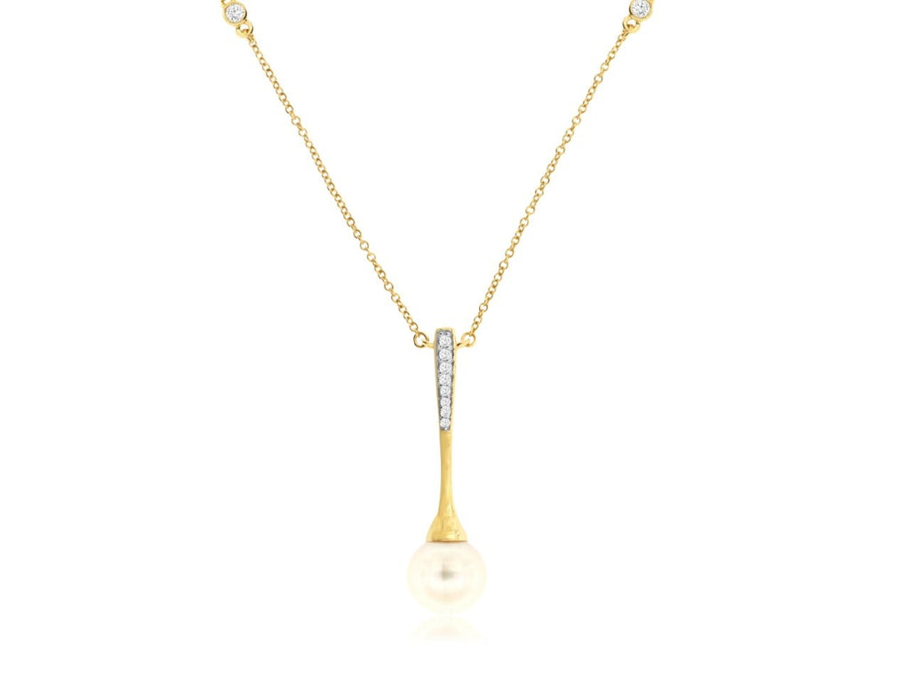 Color Gemstone Necklace with 1 Cultured Pearl, and 10 Round Diamonds, totaling 0.10ctw