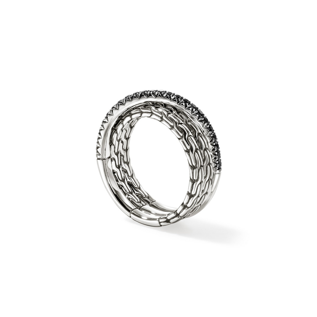 Color Gemstone Ring in Sterling Silver White Round Black Sapphire Ring Size: 7 MM Width: 7