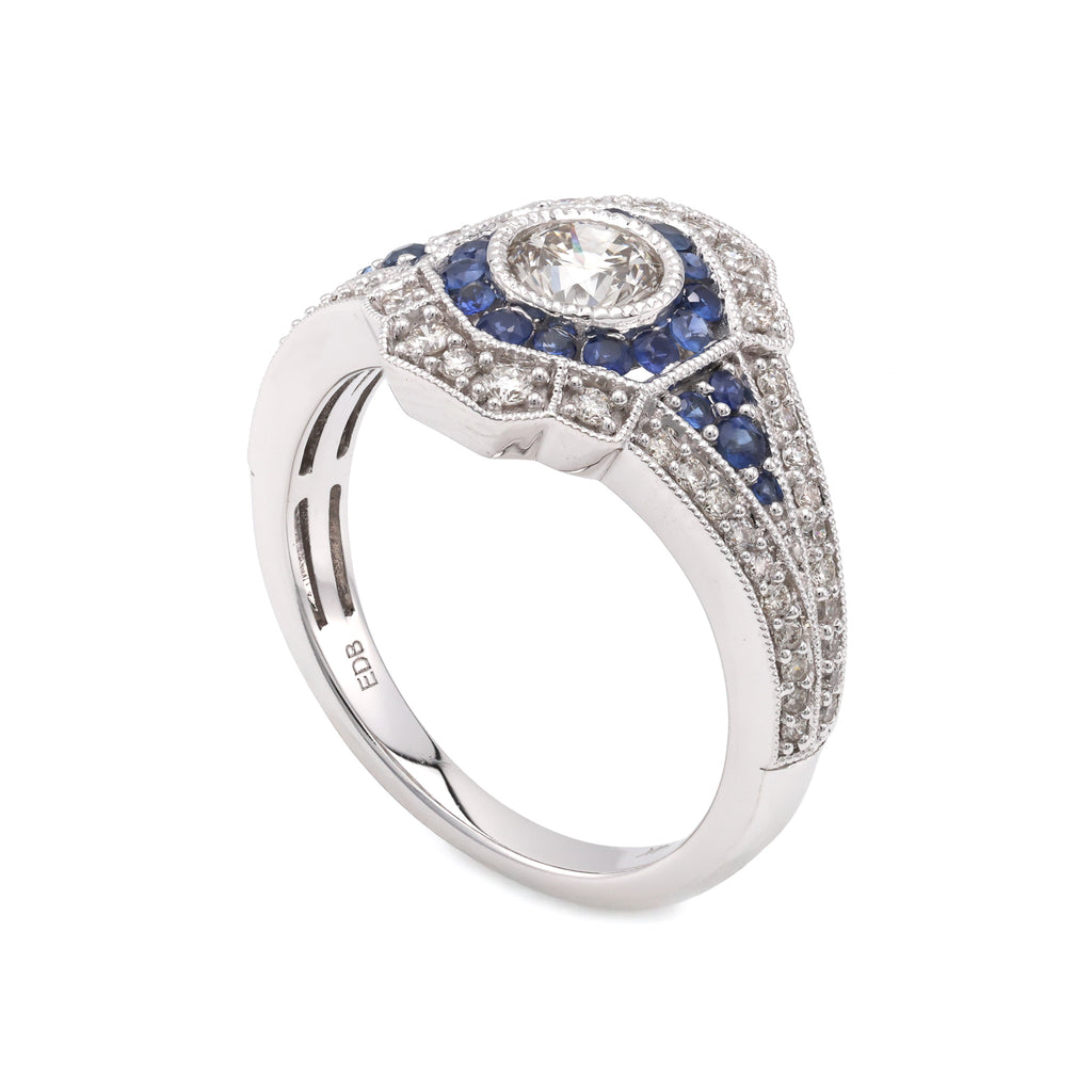 Color Gemstone Ring in 14 Karat White Round Sapphire, totaling 0.33ctw Round Diamond, totaling 0.72ctw Ring Size: 7