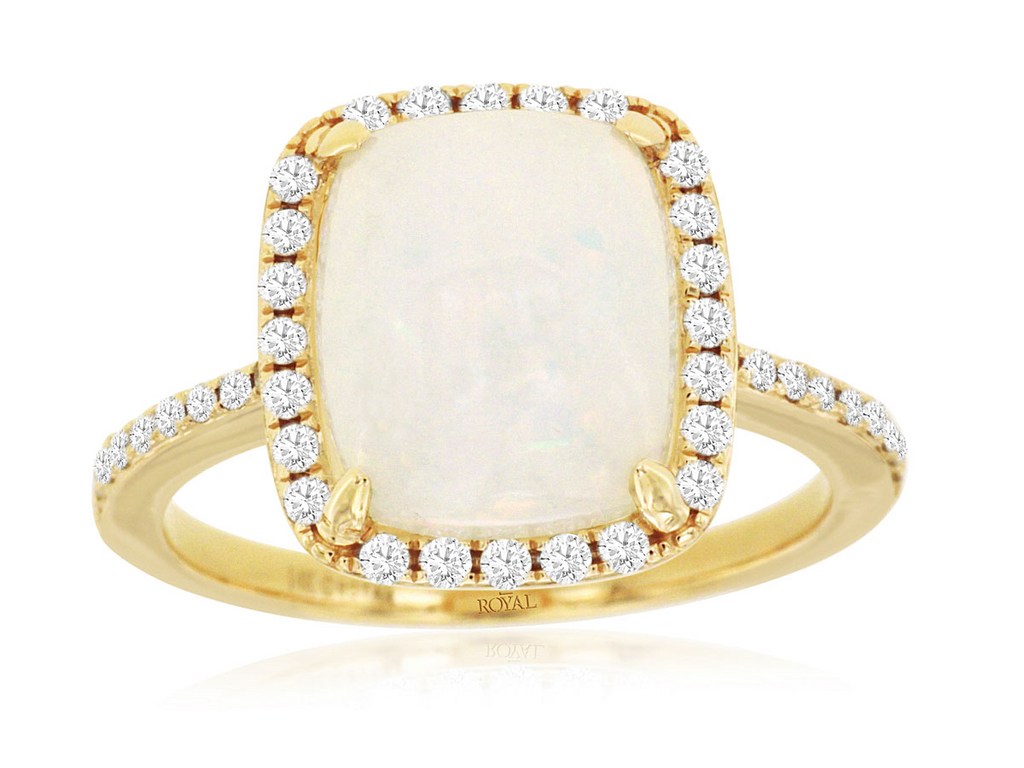 Priced at $2,495.00, this ring is more than just an accessory; it's a meaningful self-gift, perfect for commemorating personal milestones and achievements. Embrace the emotional resonance of opals and the timeless beauty of natural diamonds with this luxurious gemstone ring. Elevate your jewelry collection by visiting our store or shopping online to make this exceptional piece yours today.
