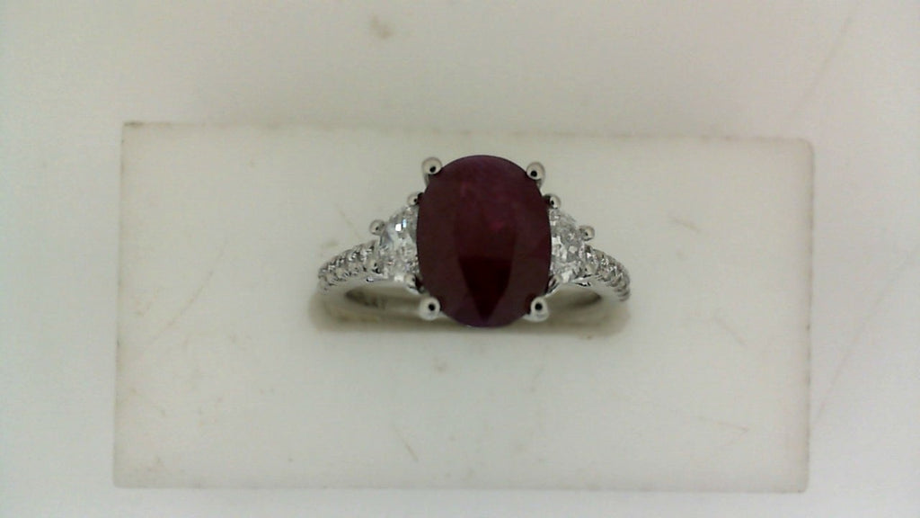 Discover the epitome of elegance with this exquisite Color Gemstone Ring from ReMARKable Designs, featuring a stunning oval ruby weighing 2.13 carats at its heart. This masterpiece is crafted in radiant platinum white and is adorned with a total of 0.36 carats of round diamonds alongside 0.49 carats of various shaped diamonds, each meticulously set to enhance the allure of the central ruby. Perfectly sized at 6.25, this ring is more than just a piece of jewelry; it is a statement of sophistication and refinement.At ReMARKable Designs, our expertise since 1981 shines through in every piece we offer.