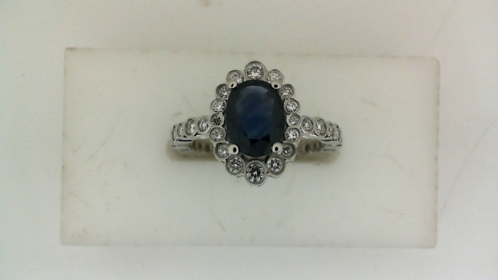 Unveil the charm of the ReMARKable Designs Color Gemstone Ring, an exquisite piece that perfectly blends luxury and elegance. Crafted in stunning platinum white, this ring features a captivating oval sapphire weighing 1.07ctw, beautifully accompanied by sparkling round diamonds totaling 0.47ctw. The deep blue hue of the sapphire contrasts brilliantly with the diamonds, making this ring a true standout.