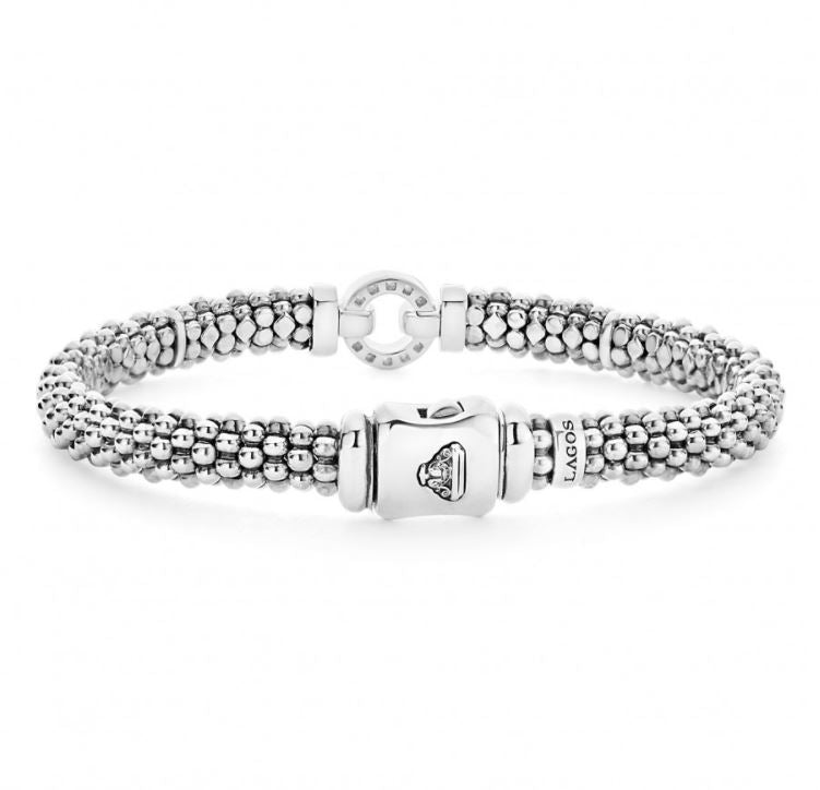 Designed exclusively for ladies, this bracelet measures 7 inches, ensuring a comfortable and secure fit with its discreet hidden plunger clasp. It serves not only as a sophisticated accessory but also as a symbolic marker of personal milestones or a cherished gift for a loved one. LAGOS is renowned for its exceptional attention to detail and quality, ensuring that each piece stands as a true testament to fine jewelry craftsmanship.