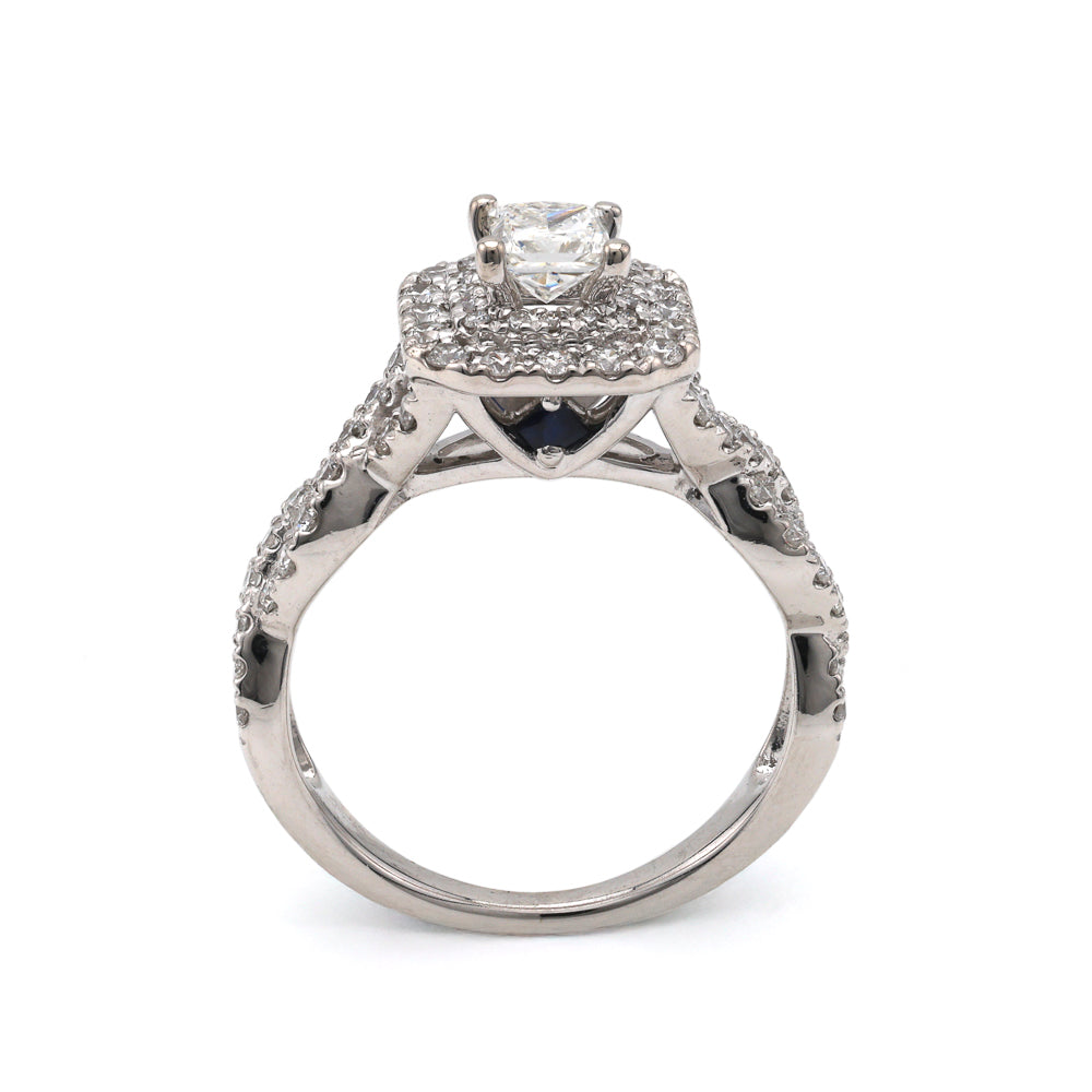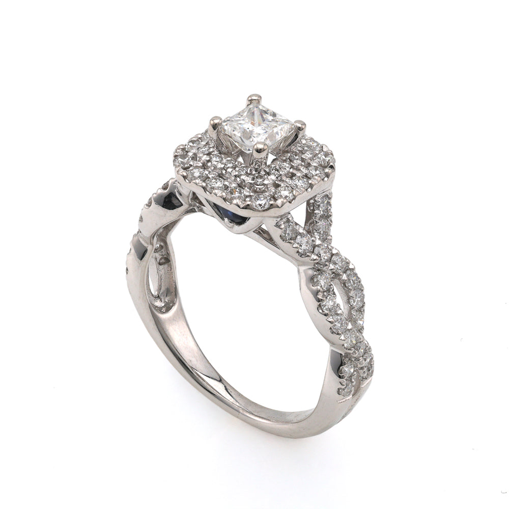 Discover the breathtaking allure of the Halo Hidden Accent Natural Diamond Complete Engagement Ring from Marks Estate Dept 1. This exquisite piece is meticulously crafted in luxurious 14 Karat White Gold, showcasing the timeless beauty and sophistication that only natural diamonds can offer. At its heart, a stunning 0.38ctw Princess Diamond shines with a captivating G color and SI2 clarity, symbolizing the purity and brilliance of true love.