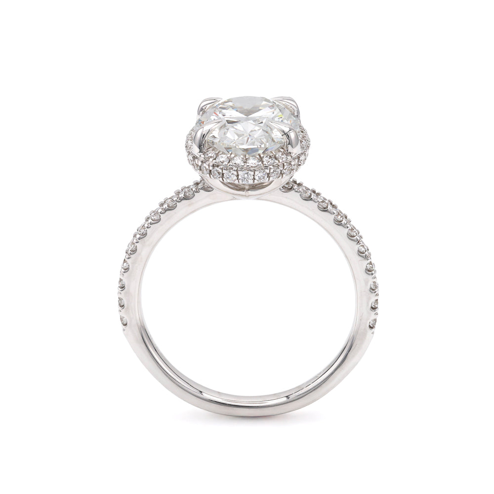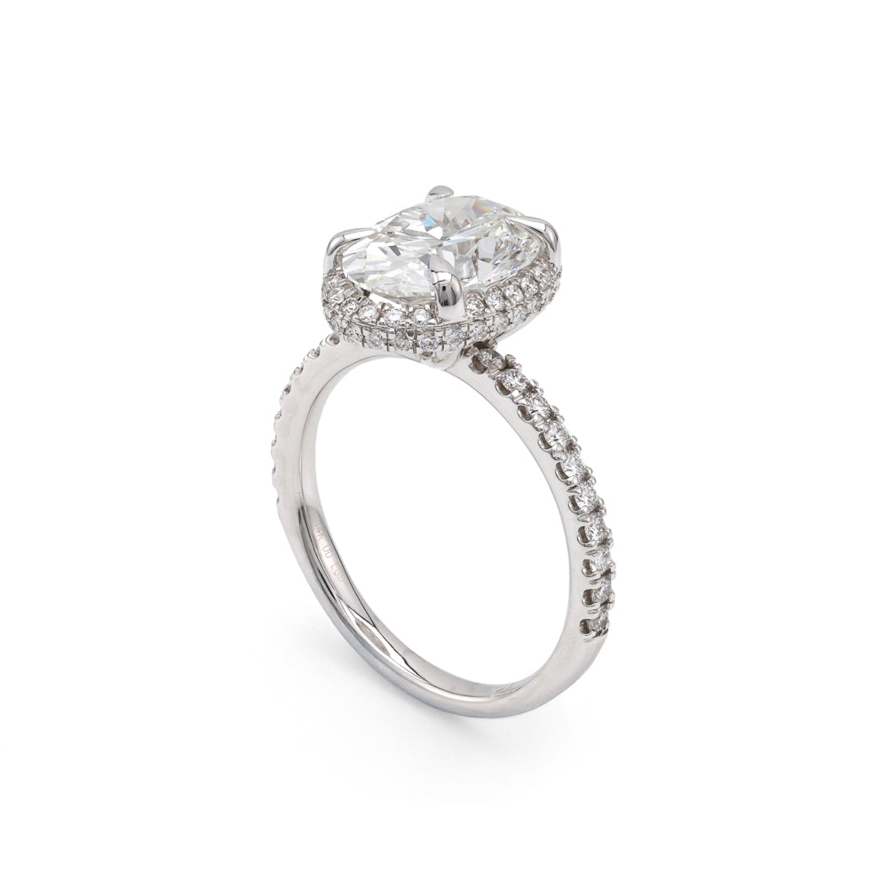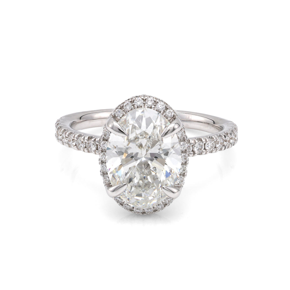 Discover the refined elegance of the Halo Lab-Grown Diamond Complete Engagement Ring by ReMARKable Designs, a masterpiece crafted in lustrous 14 Karat white gold. This exquisite engagement ring showcases a magnificent 1.53 carat oval lab-grown diamond at its heart, featuring a pristine F color and VS1 clarity, ensuring a radiant and captivating sparkle. Surrounding the central gem, 62 round lab-grown diamonds with F/G color and VS clarity contribute an additional 0.41 carats of dazzling brilliance, enhancing the ring's allure. Designed for comfort and elegance, this ladies' ring is perfectly sized at 7, with a delicate width of 2.1mm, making it an ideal choice for those who appreciate both style and substance. Lab-grown diamonds offer an ethical and sustainable alternative to mined stones, allowing you to celebrate love and commitment with a clear conscience. Whether commemorating a personal milestone or symbolizing a lifelong promise, this engagement ring is more than just jewelry; it's a statement of modern craftsmanship and enduring beauty. Experience the perfect blend of tradition and innovation with ReMARKable Designs's exceptional design. Seize the opportunity to own a piece that combines luxury with responsibility. Visit our store today to make this extraordinary ring yours and cherish a symbol of elegance and love forever.Lab-grown disclaimer. Growing a diamond in a laboratory is still a very complex and costly process. As time goes on and more companies begin to produce these diamonds the price will change due to competition and advancement in technology. For those reasons we are not able to include Lab Grown diamonds in our lifetime upgrade policy.