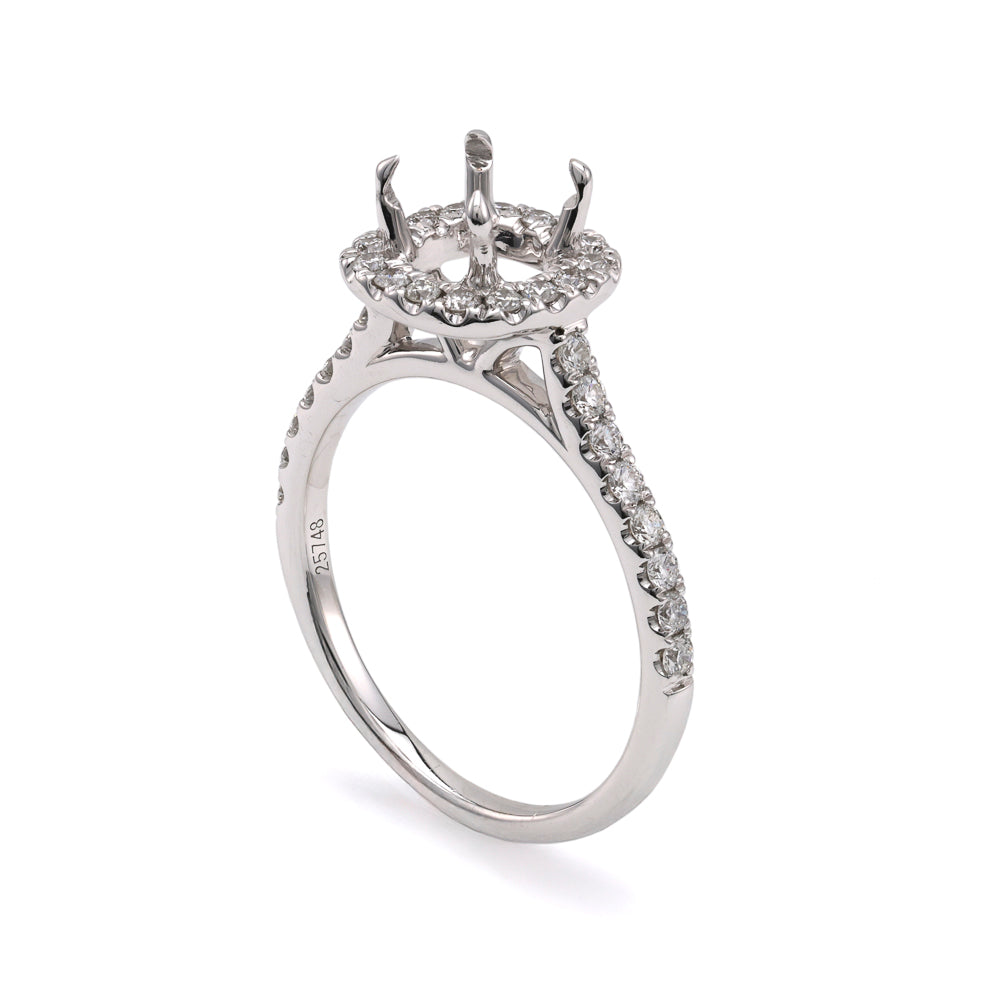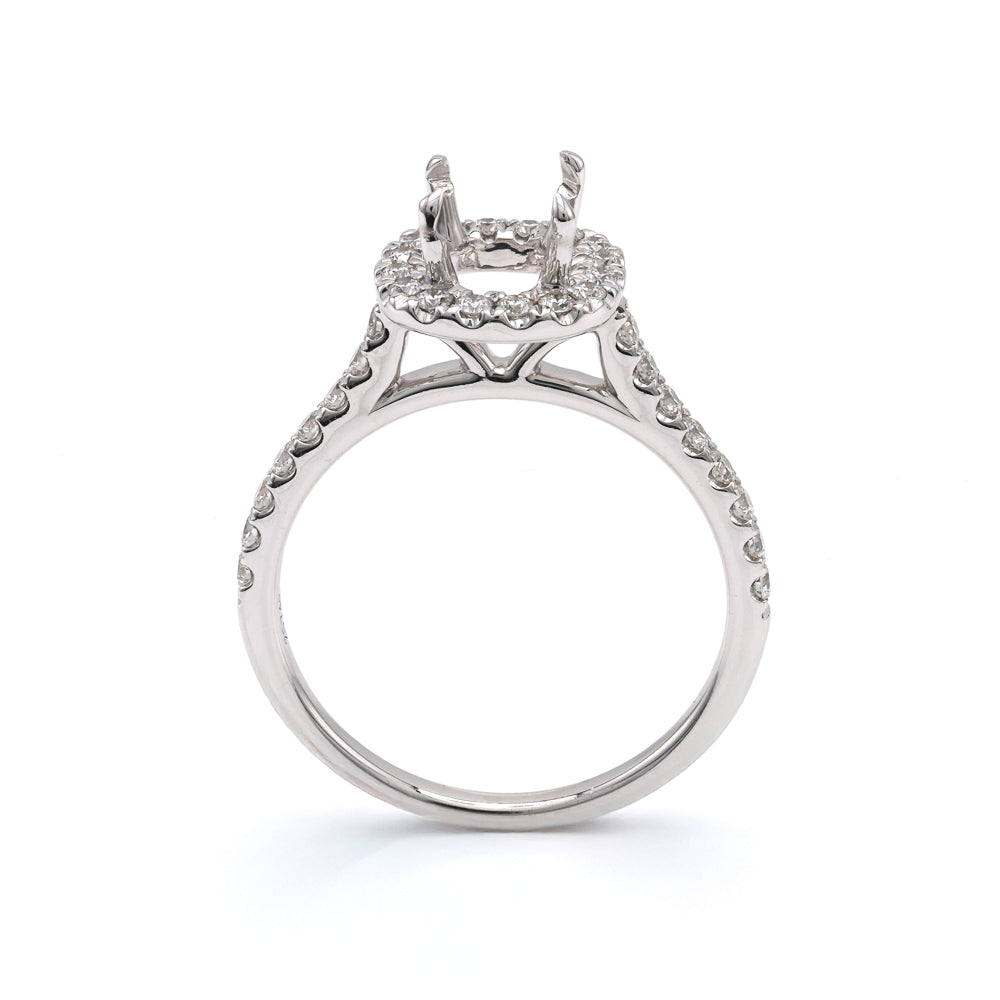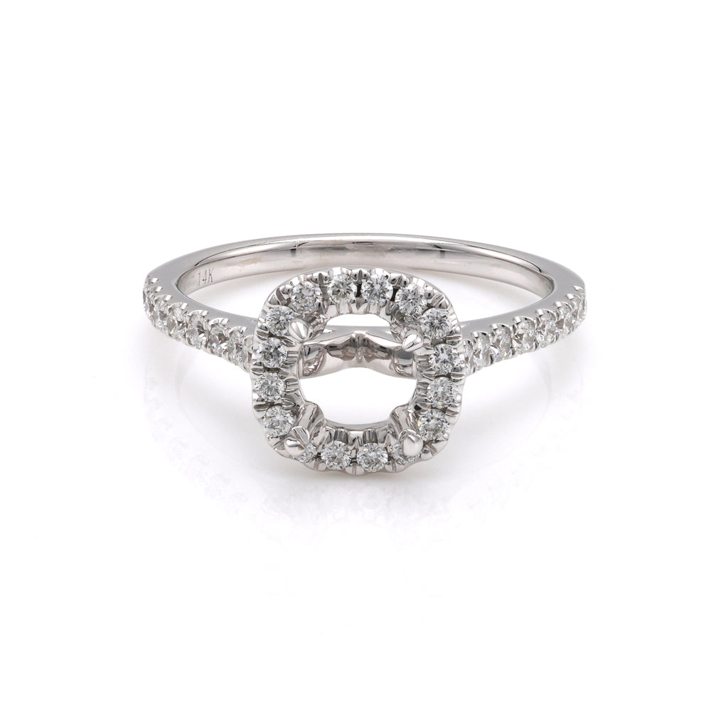 Halo Mined Diamond Engagement Ring in 14 Karat White with 32 Round Diamonds, Color: G/H, Clarity: SI1, totaling: 0.44ctw Ring Size: 6.5 **Center Diamond Sold Separately