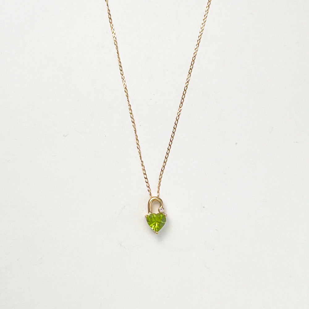 Discover the exquisite elegance of the ReMARKable Estate Heart Color Gemstone Necklace, a captivating piece crafted for those who appreciate timeless beauty. This stunning necklace, made from 14 Karat Yellow Gold, features a radiant heart-shaped Peridot that is perfectly complemented by a sparkling round diamond with a total carat weight of 0.02. The pendant is gracefully suspended from a delicate 17-inch rope chain, making it an ideal accessory for ladies seeking to enhance any ensemble with sophistication and style.The craftsmanship of this ReMARKable Estate necklace reflects unparalleled attention to detail and quality. Each gemstone is thoughtfully selected, ensuring that every piece exudes brilliance and clarity.