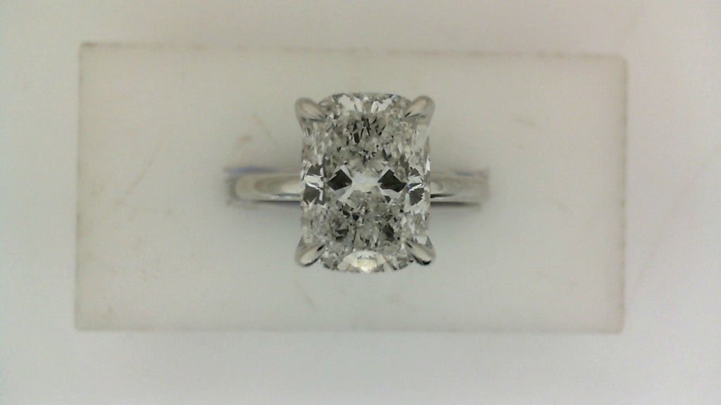 Hidden Accent Lab-Grown Diamond Complete Engagement Ring in 14 Karat White with 1 Elongated Cushion Lab Grown Diamond, Color: F, Clarity: VS1, totaling 3.05ctw
