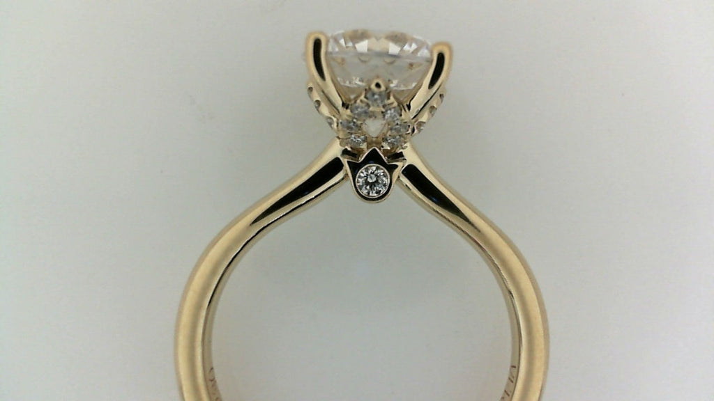 Discover the refined elegance and unmatched artistry of the VERRAGIO Hidden Accent Natural Diamond Semi-Mount Engagement Ring, a true testament to enduring love. Crafted from luxurious 14 Karat Yellow Gold, this exquisite ring features natural round diamonds totaling 0.17 carats. Each diamond is selected for its exceptional brilliance and clarity, enhancing the ring's captivating allure. The semi-mount design invites you to personalize your love story by choosing a center stone that reflects your journey, making this piece uniquely yours.