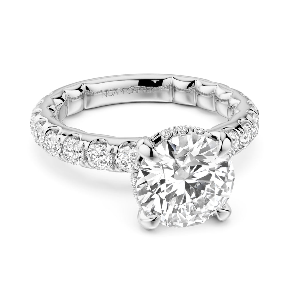 Crafted by the esteemed Noam Carver, known for their exceptional attention to detail and innovative designs, this engagement ring exemplifies unparalleled craftsmanship. Each diamond is meticulously selected and expertly set to create a harmonious balance of beauty and durability. The hidden accent side stones add a unique touch, offering a surprise element that enhances the overall allure of the ring. This piece is a testament to the artisan's dedication to quality and precision, ensuring it becomes a cherished heirloom.