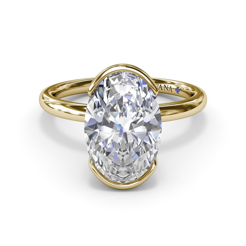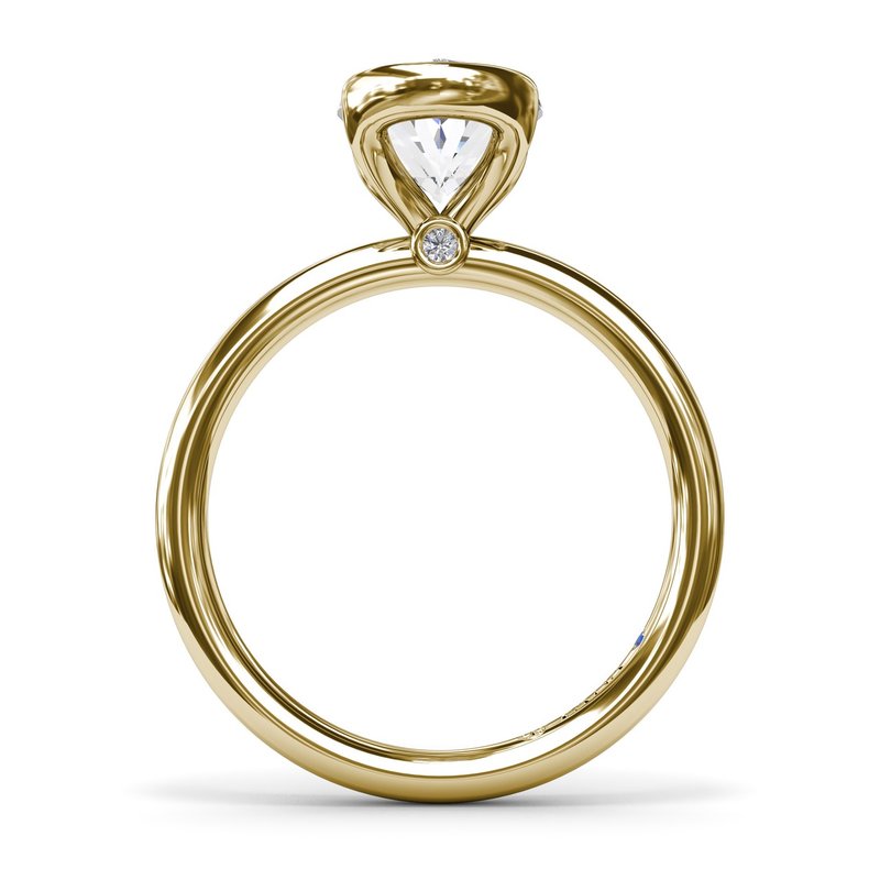 Hidden Accent Solitaire Natural Diamond Semi-Mount Engagement Ring in 14 Karat Yellow with 2 Round Diamonds, totaling 0.02ctw Ring Size: 6.5 MM Width: 2.5