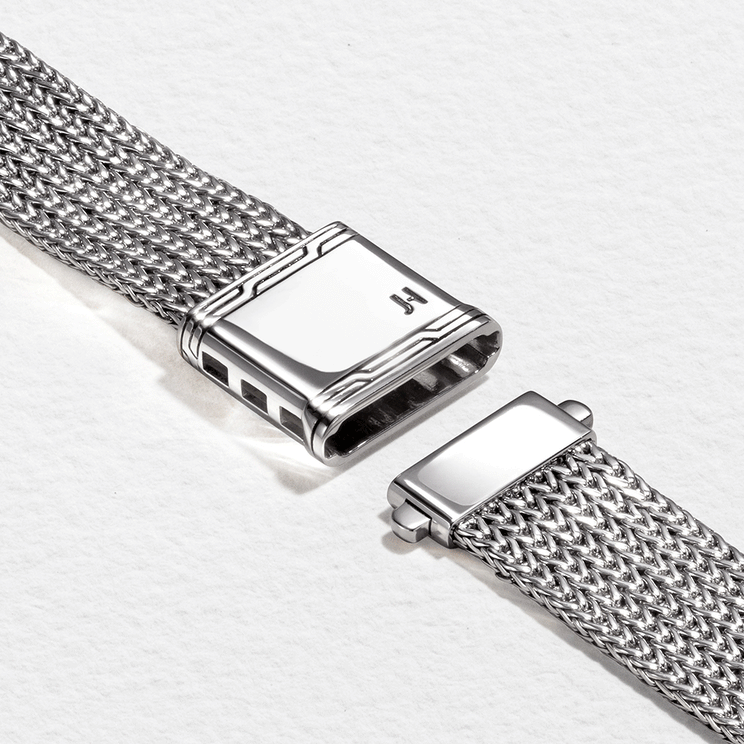 John Hardy USA Inc. Timepiece Bands Clasp Type: Push Button Band Material: Sterling Silver Band Color: White Band Width: 18 Finish: Polished