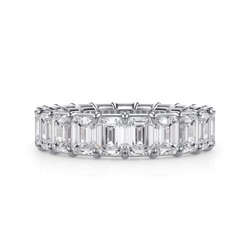 Discover the exquisite elegance of the Saban Onyx Lab-Grown Diamond Band, where modern innovation meets timeless beauty. Crafted by the renowned Saban Onyx, this stunning band features 19 emerald-cut lab-grown diamonds, each carefully set in gleaming 14 karat white gold. With a total carat weight of 4.85, these diamonds radiate with an impressive F/G color and VS2 clarity, ensuring a breathtaking sparkle from every angle. Designed in a size 5, this band appeals to those who appreciate a refined yet contemporary aesthetic.