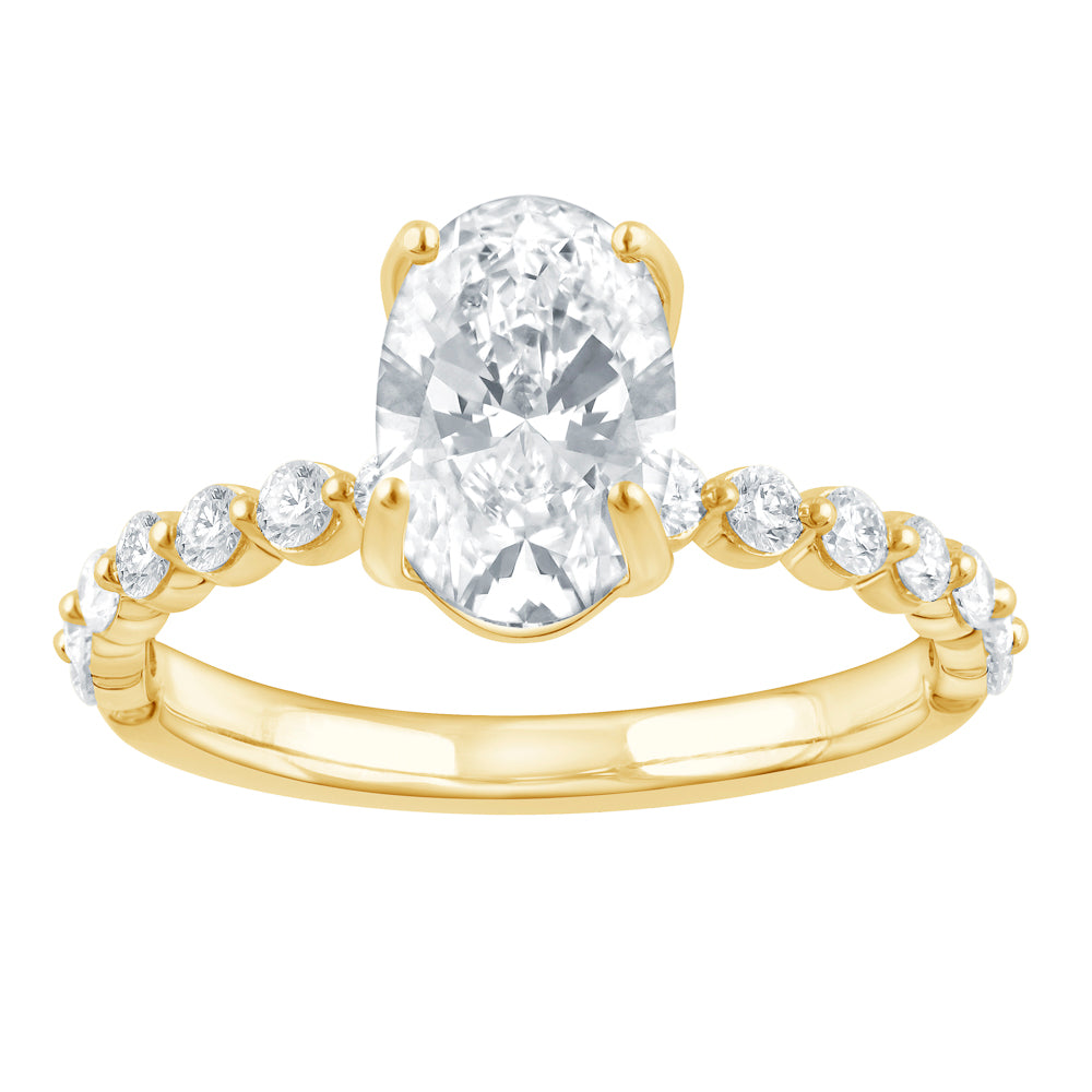 Experience the epitome of modern elegance with the ReMARKable Designs Lab-Grown Diamond Complete Engagement Ring. Crafted by the esteemed Marks Jewelers, this remarkable piece embodies sustainable luxury and innovation. At its heart, a dazzling 1.50 carat oval lab-grown diamond radiates brilliance with an F color and VS1 clarity, promising a captivating sparkle. Enhancing its allure, 14 round lab-grown diamonds total 0.38 carats, each boasting F/G color and VS clarity. These gems are set in lustrous 14 Karat yellow gold, offering a harmonious blend of elegance and contemporary charm. Designed for both beauty and comfort, the ring features a 2.3mm band, perfectly fitting a size 7, symbolizing a promise that endures. Lab-grown diamonds are celebrated for their ethical production and eco-friendly attributes, matching the durability and beauty of natural diamonds. Priced at $2,995.00, this engagement ring is an investment in timeless style and advanced craftsmanship. It's an ideal choice for those who value both tradition and modernity, making it a meaningful token for personal milestones or new beginnings.Embrace the future of luxury and let your values shine with a ring that reflects your unique story. Secure this exceptional piece by visiting our store or shopping online today. Note: Due to the evolving nature of lab-grown diamond production, these diamonds are excluded from our lifetime upgrade policy. Celebrate your style with Marks Jewelers's masterpiece.Lab-grown disclaimer. Growing a diamond in a laboratory is still a very complex and costly process. As time goes on and more companies begin to produce these diamonds the price will change due to competition and advancement in technology. For those reasons we are not able to include Lab Grown diamonds in our lifetime upgrade policy.