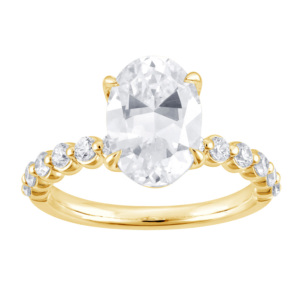 Discover the exquisite elegance and sustainable luxury of the ReMARKable Designs Lab-Grown Diamond Complete Engagement Ring. This stunning piece, crafted by Marks Jewelers, features a magnificent 1 Oval Lab-Grown Diamond, renowned for its pristine G color and VS1 clarity, totaling 2.54 carats. Enhancing its sparkle, 12 Round Lab-Grown Diamonds add an additional 0.46 carats of brilliance, all set in opulent 14 Karat Yellow Gold. Designed for elegance and comfort, this ring is available in size 7, making it a timeless representation of contemporary craftsmanship. Each lab-grown diamond is ethically sourced, offering a sustainable choice that rivals the beauty of natural diamonds without compromise. Although our lab-grown diamonds are not part of our lifetime upgrade policy due to their unique creation process, they stand at the forefront of luxury, continually evolving with technological advancements. This ring is more than just a symbol of enduring love-it's an ideal gift for celebrating personal milestones with grace and sophistication. Priced at $3,995, it delivers exceptional value and quality. Embrace the future of fine jewelry with this extraordinary piece and make it yours today. Cherish its unmatched beauty for generations, and let it be a testament to your unique journey. Seize this opportunity to indulge in unparalleled luxury and sophistication. Celebrate yourself or a loved one with a ring that speaks volumes about your taste and values.Lab-grown disclaimer. Growing a diamond in a laboratory is still a very complex and costly process. As time goes on and more companies begin to produce these diamonds the price will change due to competition and advancement in technology. For those reasons we are not able to include Lab Grown diamonds in our lifetime upgrade policy.