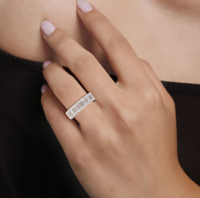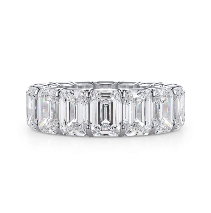 Lab-Grown Diamond Eternity Ladies Wedding Band in 14 Karat White with 14 Emerald Lab Grown Diamonds, Color: F/G, Clarity: VS, totaling 7.79ctw