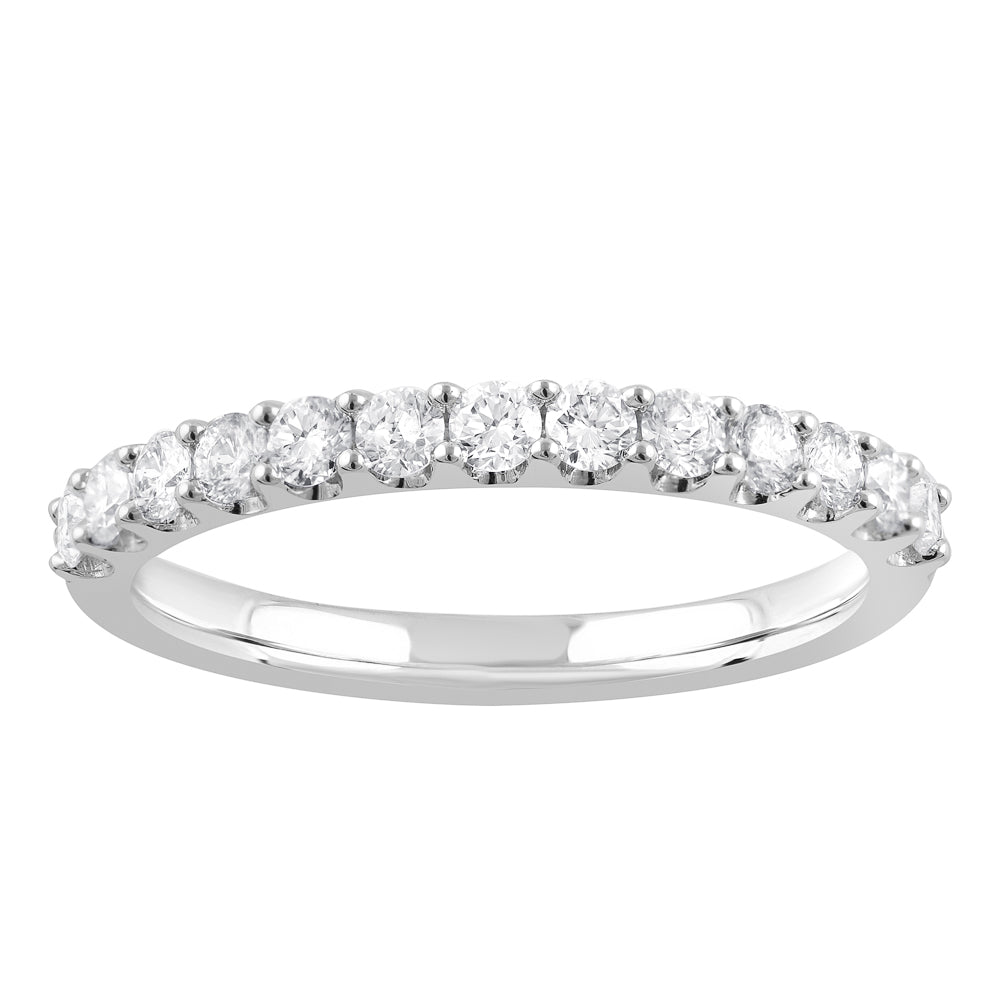 Discover the timeless allure of the ReMARKable Designs Ladies Wedding Band, a masterpiece of elegance and modernity. Expertly crafted in pristine 14 Karat white gold, this stunning band is adorned with 13 meticulously hand-selected round lab-grown diamonds, totaling 0.50 carats. Each stone radiates exceptional brilliance, ensuring a captivating sparkle that symbolizes everlasting love. The sleek 2.4mm width of the band ensures both comfort and style, making it an ideal choice for marking life's most significant moments.\n\nLab-grown diamonds are celebrated for their ethical beauty and sustainability, offering the luxury and responsibility that modern consumers value. This wedding band, available in ring size 7, fits comfortably and complements any skin tone with its neutral white gold sheen. Whether as a meaningful self-gift or a token of union, this piece makes a heartfelt statement.\n\nMarks Jewelers's dedication to quality craftsmanship ensures a piece that will be cherished for a lifetime. Embrace the future of fine jewelry with lab-grown diamonds that are sophisticated, sustainable, and undeniably stunning. Add this exceptional band to your collection today and let it be a testament to your unique journey. Visit our store to make this beautiful ring yours and experience the joy of wearing a piece that perfectly balances elegance with ethical luxury.\n\nPlease note that due to the evolving nature of lab-grown diamonds and their market dynamics, these stones are not included in our lifetime upgrade policy. Celebrate responsibly and stylishly-make this exquisite ring a part of your story.Lab-grown disclaimer. Growing a diamond in a laboratory is still a very complex and costly process. As time goes on and more companies begin to produce these diamonds the price will change due to competition and advancement in technology. For those reasons we are not able to include Lab Grown diamonds in our lifetime upgrade policy.
