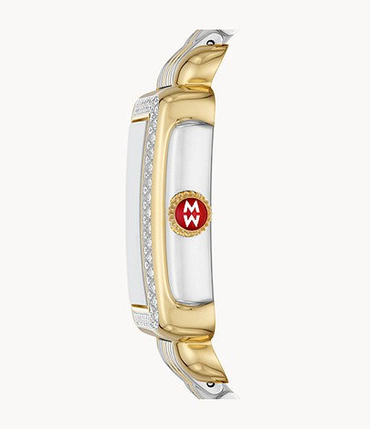 Inspired by the iconic Art Deco era, Michele's Deco collection emphasizes a signature blend of straight and curved lines, embodying both classic and contemporary influences. The intricate design details, including the feminine lugs and the MW gemstone pattern, reflect a commitment to craftsmanship and quality. With a reliable quartz movement and 5ATM water resistance, this timepiece offers precision and peace of mind for everyday elegance. Michele's dedication to luxury craftsmanship is evident in every detail, making this timepiece a testament to their expertise and artistry.