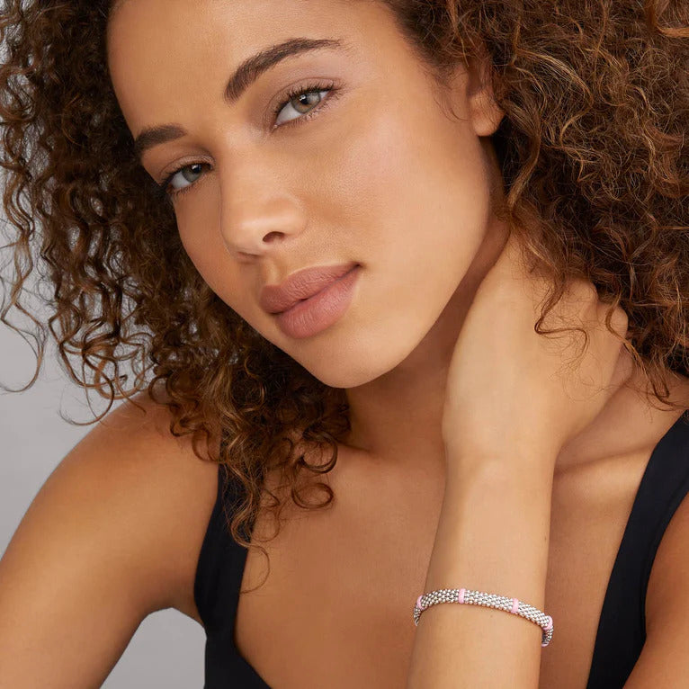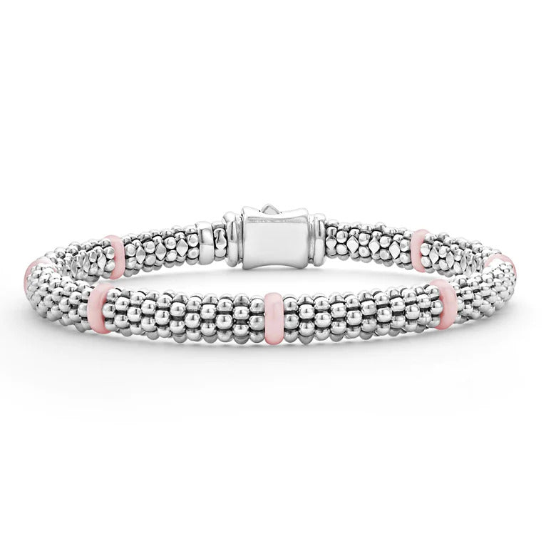 Experience the elegance and modern artistry of the LAGOS Caviar Bracelet, a stunning piece crafted from sterling silver and ceramic. This exquisite bracelet, featuring a harmonious blend of white and pink hues, embodies the signature caviar design that LAGOS is renowned for. Measuring 7 inches in length, it offers a comfortable fit for all-day wear, while the hidden plunger clasp ensures both security and a sleek appearance. Priced at $600.00, this bracelet is more than just an accessory; it's a celebration of life's milestones and an ideal gift for cherished moments, including our exclusive Mother's Day 2025 Collection. Whether treating yourself or someone special, this bracelet promises to elevate any jewelry collection with its timeless beauty. Embrace the allure of LAGOS and enhance your style with this sophisticated piece. Visit us today to explore more designs that reflect your unique elegance.
