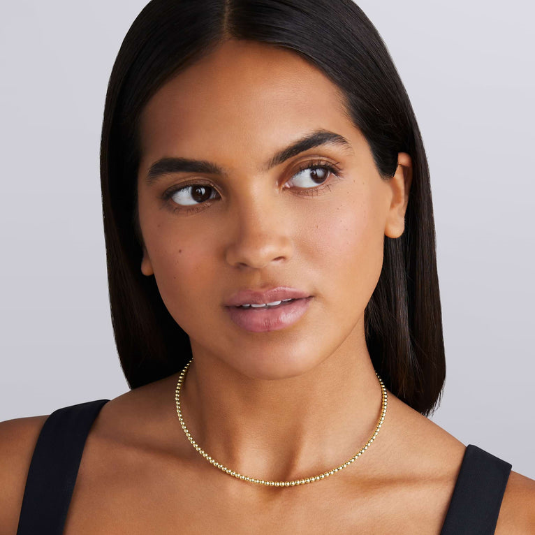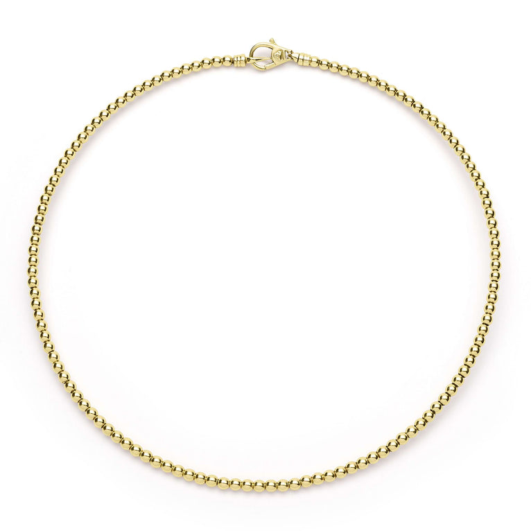 Necklace Type: Collar Chain Length: 16 Chain Type: Bead Material Type: 18 Karat Material Color: Yellow Clasp Type: Lobster Claw Collection: Lagos Caviar Gold
