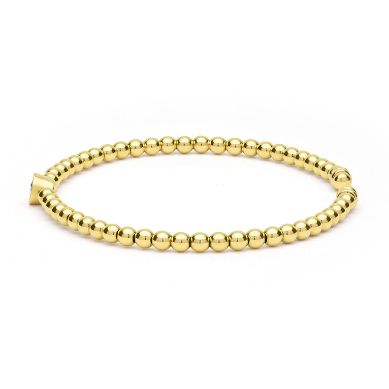 Natural Diamond Bracelet in 18 Karat Yellow Round Diamond, Color: G/H, Clarity: SI1, totaling 0.15ctw Length: 7 Clasp Type: No Clasp Bracelet Type: Cuff Collection: Lagos Caviar Gold