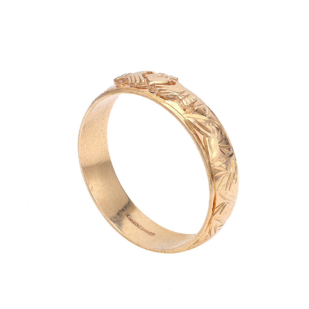 Experience the timeless allure of the ReMARKable Estate M Estate Collection Carved Band, a distinguished piece designed for those who appreciate the finer things in life. This men's ring, crafted from luxurious 14 Karat Yellow Gold, boasts a striking diamond-cut finish that enhances its unique texture and brilliant shine. With a bold width of 5.56MM, this piece stands out, making it a perfect statement of elegance and sophistication. Marks Jewelers' Estate Department proudly presents this rare find, refurbished by skilled artisans to restore its original glory while preserving the charm that only time can bestow. By choosing this band, not only do you embrace a piece of history, but you also gain a unique symbol of personal milestones and achievements. Available in size 11, it is an ideal self-gift or a meaningful gesture for someone special. Our graduate gemologists ensure the quality and authenticity of every estate piece, giving you peace of mind with your purchase. As part of our commitment to excellence, we guarantee that each ring is a testament to superior craftsmanship. Add this remarkable band to your collection today and let it be a constant reminder of enduring love and success. Embrace the elegance of a bygone era with the ReMARKable Estate Collection. Visit our store or shop online to make this exquisite piece yours today.This item is an estate piece of jewelry, often one-of-a-kind, and has been previously owned. It has been refurbished by our master jewelers to be enjoyed again.
