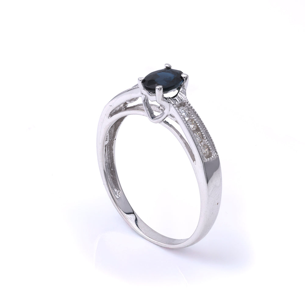 Discover the allure of the ReMARKable Estate Color Gemstone Ring, a unique piece crafted in 10 Karat White Gold. This exquisite ring features a captivating 6.15mm Oval Sapphire complemented by eight dazzling Round Diamonds, with a color grading of I/J and a clarity of SI2-I1, totaling 0.16ctw. Designed for elegance, this gemstone ring boasts a ring size of 7.25 and a sleek MM width of 3, making it a perfect fit for everyday wear or special occasions.
