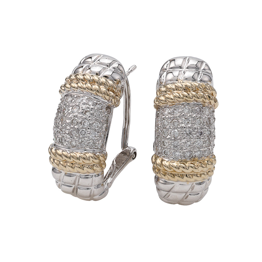 Unveil the timeless elegance of the ReMARKable Estate M Estate Collection with these exquisite Ladies' Natural Diamond Earrings. Crafted from a sophisticated blend of sterling silver and 18-karat white and yellow gold, these earrings offer a stunning contrast of materials and colors, showcasing a unique artistic flair. Adorned with meticulously selected natural diamonds, each stone radiates unmatched brilliance, a testament to the expertise of our graduate gemologists.These estate earrings are more than just a luxurious accessory; they are a piece of history, lovingly refurbished by master jewelers to be cherished once more. The sophisticated cuff style, complemented by a secure omega closure, ensures both comfort and style, making them perfect for any occasion.With a legacy of quality and trust dating back to 1981, Marks Jewelers is synonymous with exceptional artistry. Whether you're marking a personal milestone or indulging in a meaningful self-gift, these earrings are the perfect choice. Embrace the allure of natural diamonds and the rich heritage of estate jewelry with this captivating piece.Elevate your elegance with the harmonious blend of sterling silver and gold, enhanced by the undeniable allure of natural diamonds. Experience the legacy of fine jewelry craftsmanship, where every piece tells a story of beauty and luxury. Don't miss the chance to make these one-of-a-kind earrings your own. Add them to your collection today and celebrate the enduring charm of estate jewelry.This item is an estate piece of jewelry, often one-of-a-kind, and has been previously owned. It has been refurbished by our master jewelers to be enjoyed again.