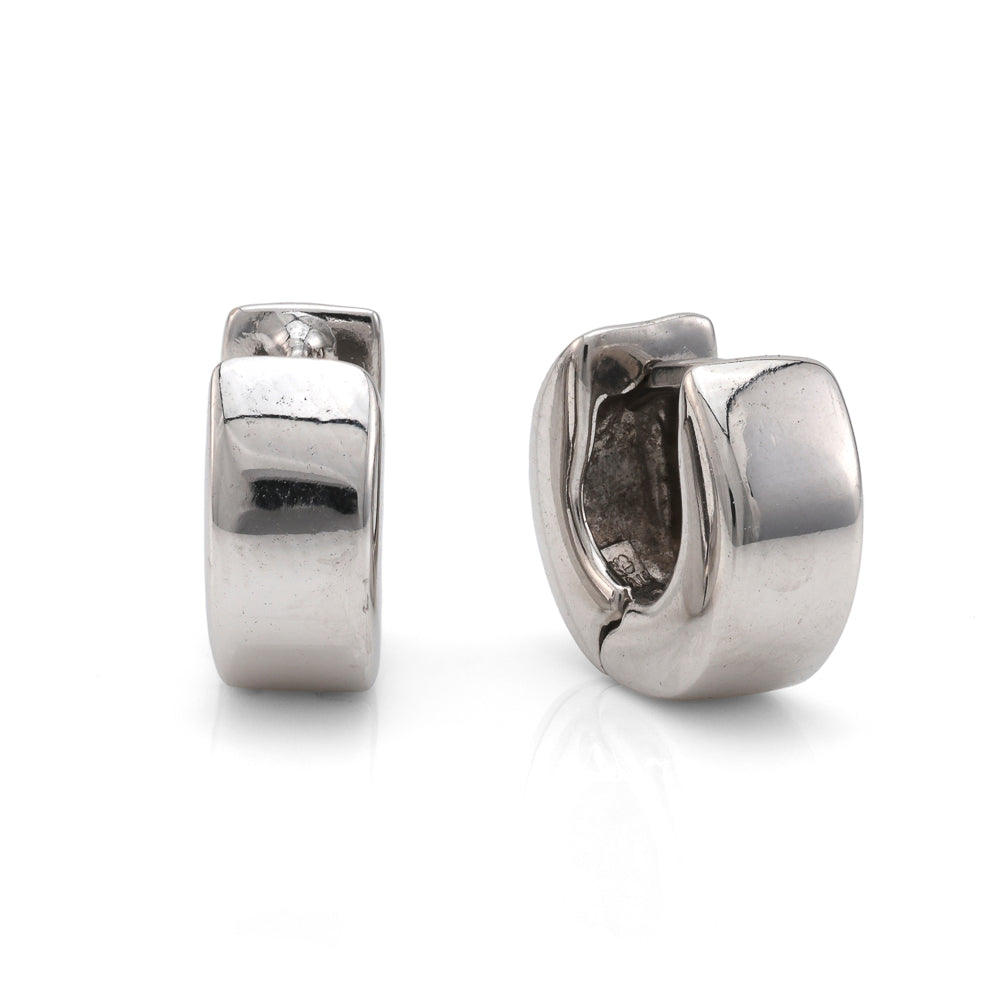 Earring Type: Huggie Material Type: 14 Karat Material Color: White Finish: Polished Closure Type: Hinge Collection: M Estate "This item is an estate piece of jewelry, often one-of-a-kind, and has been previously owned. It has been refurbished by our master jewelers to be enjoyed again."