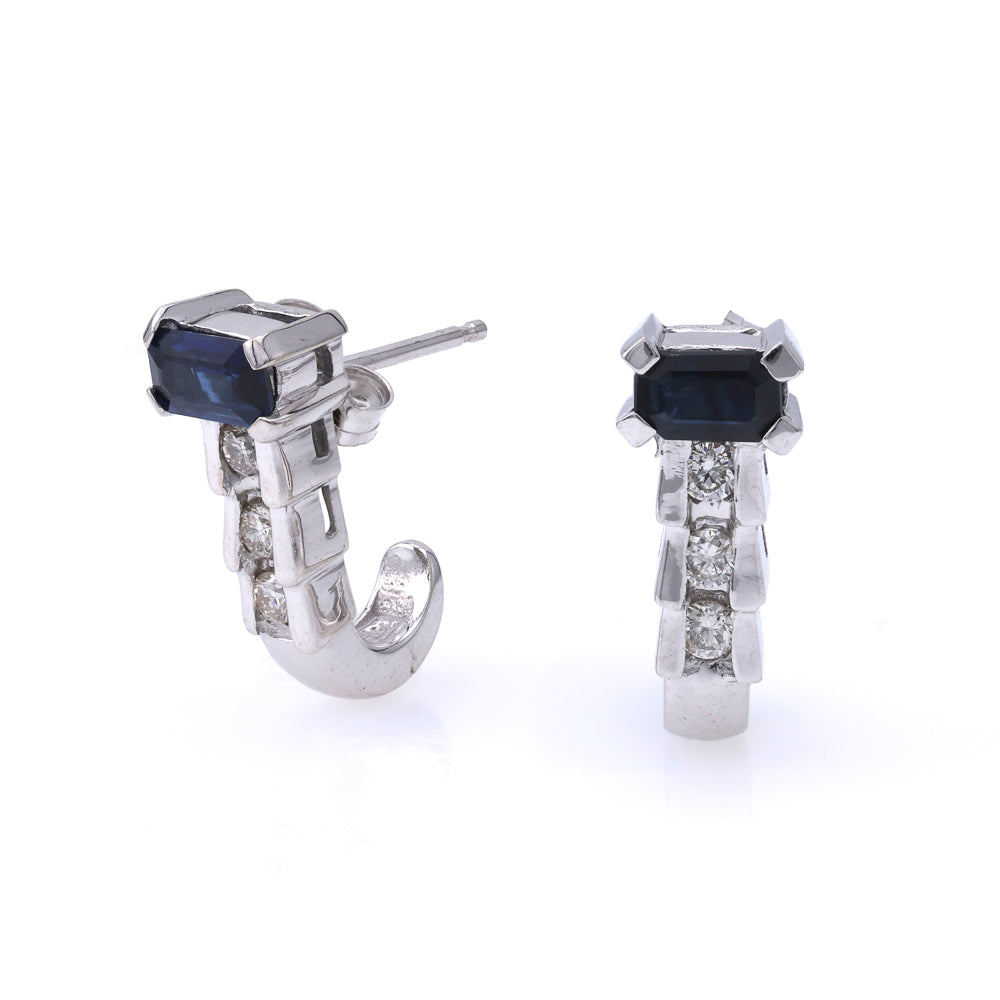 Discover the elegance of the ReMARKable Estate J Hoop Color Gemstone Earrings, crafted in luxurious 14 Karat white gold. These earrings feature two captivating 5mm emerald sapphires, beautifully complemented by six round diamonds, totaling 0.12 carats. Designed with a J Hoop style and secured with a friction back closure, they offer both sophistication and comfort for the modern woman.