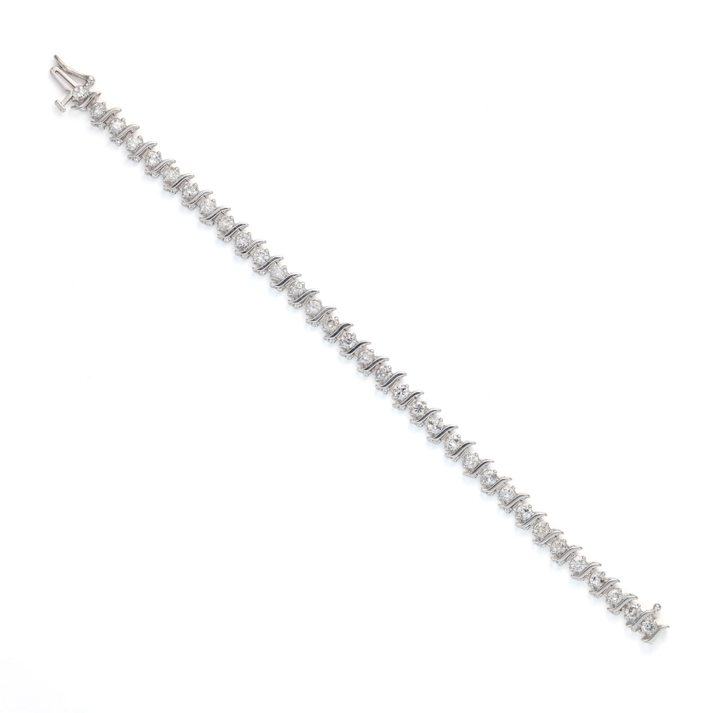 Natural Diamond Bracelet in 14 Karat White with 33 Round Diamonds, Color: J/K, Clarity: I1-I2, totaling 5.00ctw Length: 7 Clasp Type: Hidden Plunger Bracelet Type: Tennis Collection: M Estate "This item is an estate piece of jewelry, often one-of-a-kind, and has been previously owned. It has been refurbished by our master jewelers to be enjoyed again."
