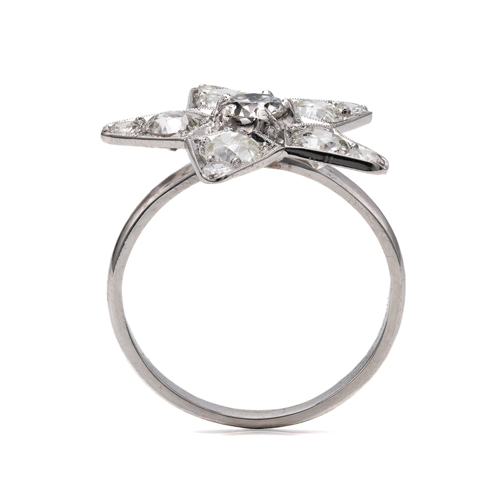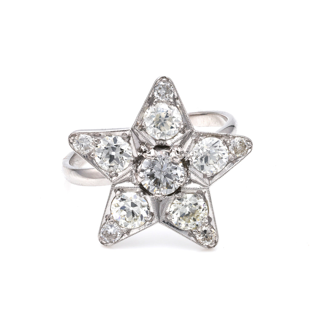 Experience the captivating allure of the ReMARKable Estate Natural Diamond Fashion Ring, a masterpiece of elegance and heritage. Crafted in luxurious 14 Karat Platinum White, this exquisite piece features 11 stunning Old European Diamonds with a total carat weight of 1.94. These natural diamonds, boasting an I/J color and SI2-I1 clarity, are meticulously selected by our expert graduate gemologists to ensure only the finest quality. This ladies' ring, sized at 7.5 with a comfortable 1.52 mm width, is part of our exclusive M Estate Collection, where each piece carries a rich history and timeless charm. The ring has been lovingly refurbished by our master jewelers, ready to be cherished anew. Its unique design and radiant beauty make it a perfect self-gift to celebrate life's milestones or to add a touch of sophistication to your jewelry collection. Embrace the legacy of fine jewelry with this unique estate piece, and let it become a cherished part of your story. Trust in the unparalleled craftsmanship and exquisite quality that Marks Jewelers is renowned for. Add this extraordinary piece to your collection today and experience the timeless elegance of natural diamonds. Visit Marks Jewelers to explore more and make this treasure yours.This item is an estate piece of jewelry, often one-of-a-kind, and has been previously owned. It has been refurbished by our master jewelers to be enjoyed again.
