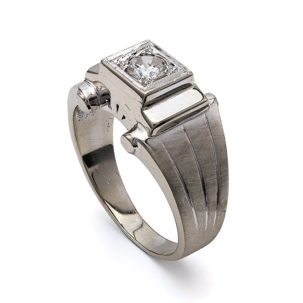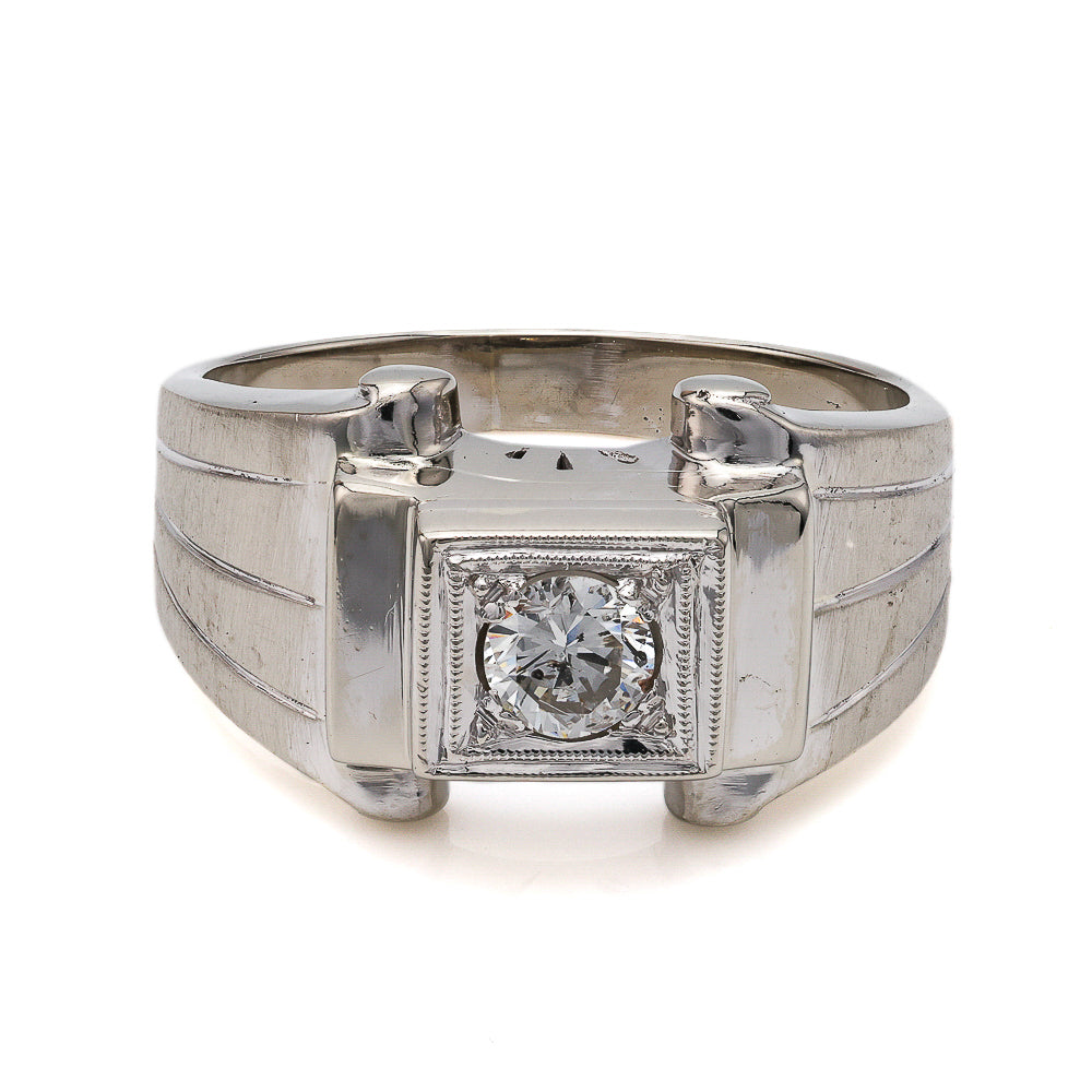 Experience the allure of timeless elegance with the ReMARKable Estate Collection Natural Diamond Fashion Ring, exclusively curated by Marks Jewelers. This distinguished piece showcases a dazzling 0.39-carat round natural diamond, with an I color grade and I1 clarity, set in the refined embrace of 14 Karat white gold. Designed specifically for men, this sophisticated ring boasts a size of 10.5 and a notable width of 12.79 MM, making it a striking statement of style and luxury.Crafted to perfection, this estate ring not only highlights exceptional artistry but also promotes sustainable fashion by breathing new life into a previously owned gem. Our team of graduate gemologists has meticulously verified the diamond's authenticity and quality, ensuring that each piece meets our high standards of excellence.Whether marking a significant milestone or indulging in a well-deserved self-gift, this natural diamond ring serves as a meaningful symbol of strength and everlasting love. Its unique heritage, combined with a contemporary flair, offers a one-of-a-kind treasure that transcends time and trends.Discover the elegance and charm of this estate diamond ring and embrace a legacy of beauty that continues to inspire. Trust Marks Jewelers for unparalleled artistry and enduring quality. Secure your piece of history today and let it be a part of your journey. Visit us now to own this captivating blend of heritage and modern style.This item is an estate piece of jewelry, often one-of-a-kind, and has been previously owned. It has been refurbished by our master jewelers to be enjoyed again.