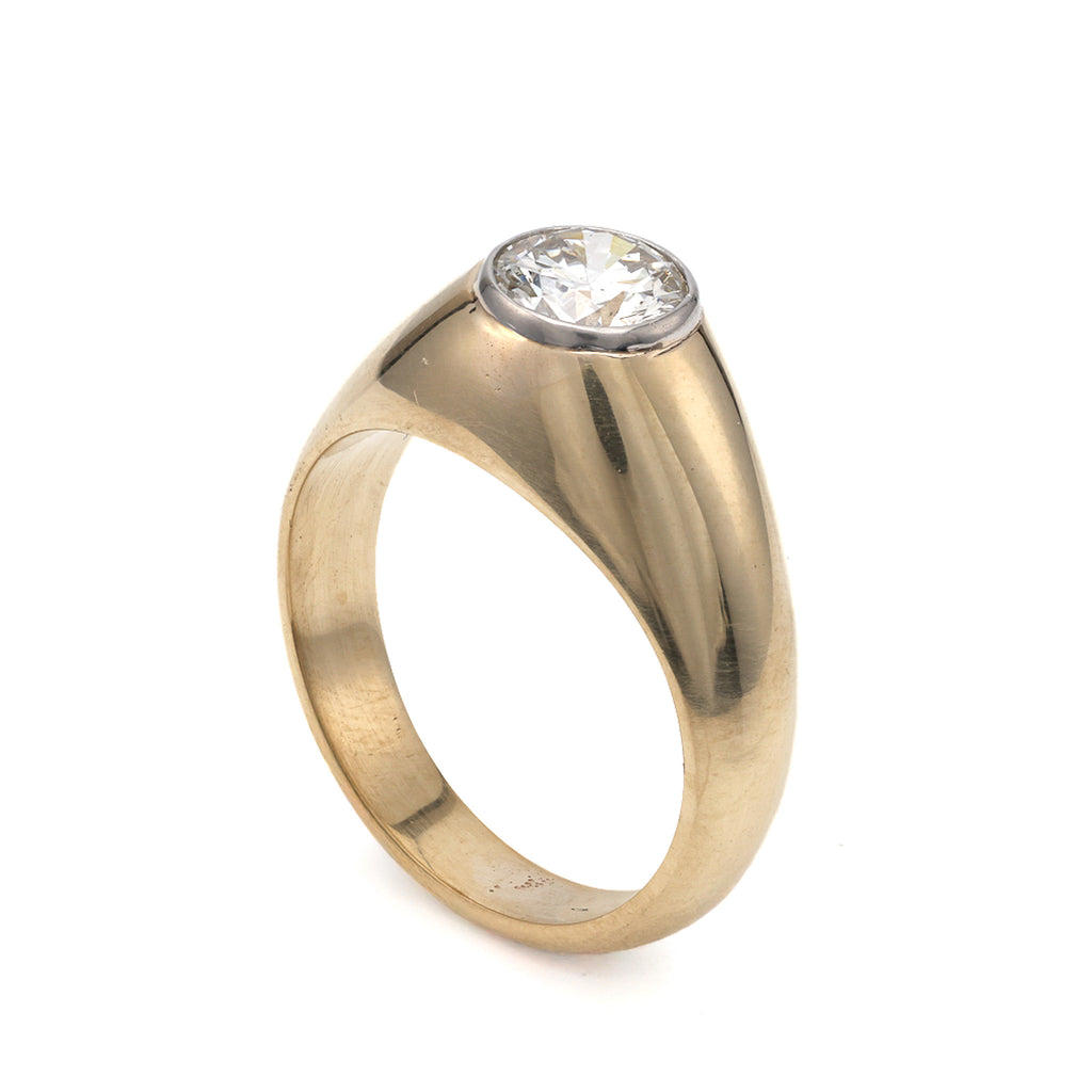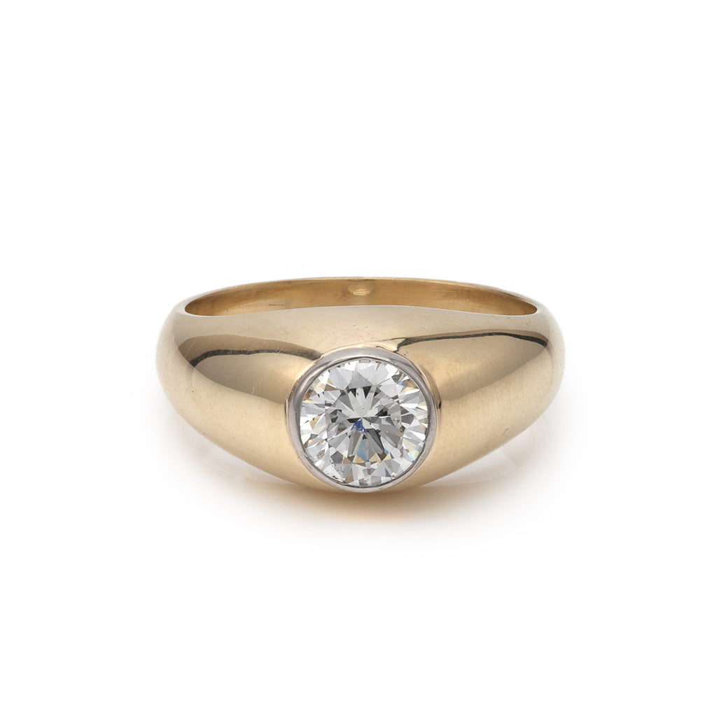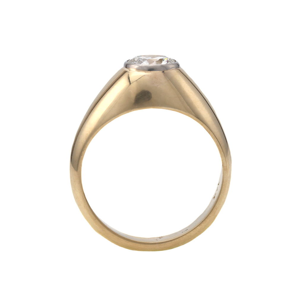 Experience the timeless allure of the ReMARKable Estate Collection with this distinguished Men's Natural Diamond Fashion Ring. Presented in luxurious 14 Karat Yellow Gold, this estate piece from Marks Jewelers is a testament to enduring elegance and sophistication. At its heart lies a stunning round diamond with a color grade of I and a clarity of SI2, radiating a captivating brilliance that only a genuine natural diamond can provide. Expertly refurbished by skilled jewelers, this unique ring has been lovingly restored to its original splendor, ready to be cherished anew.Sized at 8 with a width of 3.9 mm, this ring offers both comfort and a striking presence, making it an ideal accessory for any occasion. Whether marking a personal milestone or indulging in a meaningful self-gift, this ring is a symbol of beauty and achievement. Since 1981, Marks Jewelers has been synonymous with quality and craftsmanship, with our graduate gemologists ensuring each piece meets the highest standards of excellence. Embrace the heritage of this estate ring and let it become a cherished part of your legacy.This estate jewelry item, a one-of-a-kind treasure, invites you to celebrate life's moments. Don't miss the opportunity to own a piece with its own history and story. Secure this remarkable estate ring today and add a touch of timeless elegance to your collection.This item is an estate piece of jewelry, often one-of-a-kind, and has been previously owned. It has been refurbished by our master jewelers to be enjoyed again.