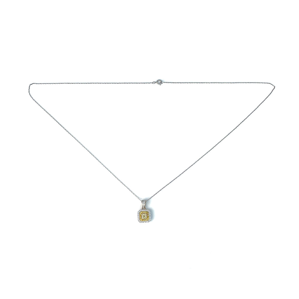Discover the elegance and allure of the ReMARKable Estate Natural Diamond Necklace, an exquisite piece that combines timeless sophistication with modern charm. This stunning necklace showcases a 0.32ctw M VS1 princess diamond as its centerpiece, beautifully accented by 16 yellow-colored SI1 clarity round diamonds and 31 G-colored I1 clarity diamonds. Crafted in a harmonious blend of 14 karat and 18 karat white and yellow gold, it offers a radiant charm that enhances its versatility and desirability.