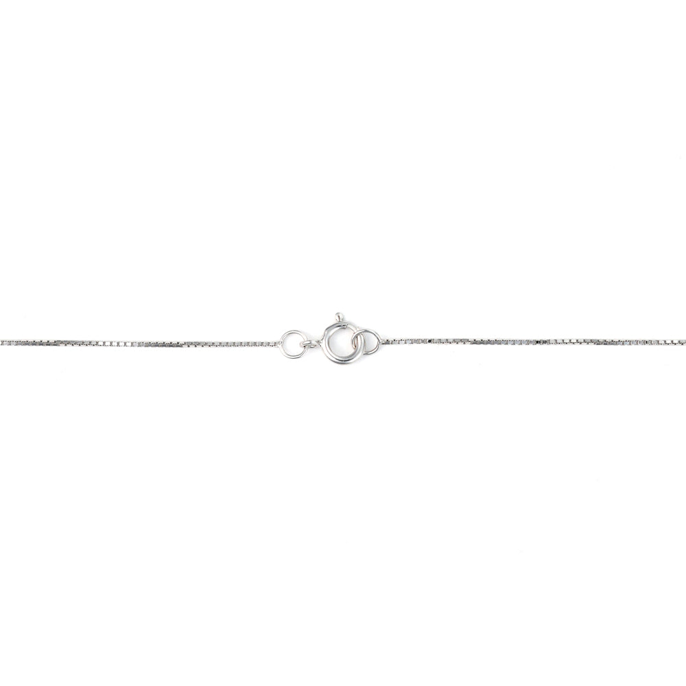 The necklace is elegantly designed with an 18-inch box chain, providing both comfort and a secure fit with its reliable spring ring clasp. This estate piece, with its rich history and expertly refurbished condition, offers a unique charm that is both classic and contemporary.