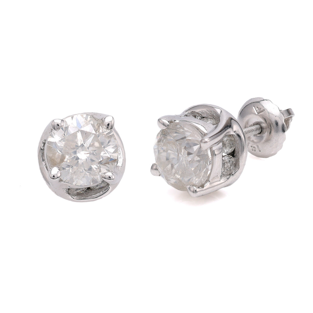 Explore the elegance and timeless beauty of the ReMARKable Estate Collection with these exquisite Natural Diamond Stud Earrings, exclusively offered by Marks Jewelers. Crafted from lustrous 14 Karat White Gold, these earrings are adorned with a total of 18 round diamonds, exuding exceptional sparkle. With a collective carat weight of 1.95ctw, the diamonds are graded K/L in color and I2-I3 in clarity, ensuring each stone captures the light with captivating brilliance. These earrings, previously cherished and now expertly refurbished by our master jewelers, maintain their unique charm while meeting high standards of quality. Each diamond is a testament to the craftsmanship and expertise that has been a hallmark of fine estate jewelry. The secure screw-back closure provides both style and peace of mind, making these earrings ideal for everyday elegance or special occasions.Embrace the history and uniqueness of these one-of-a-kind estate pieces, perfect as a meaningful self-gift or a celebration of personal milestones. The natural allure of these diamonds, carefully curated by our graduate gemologists, sets them apart from lab-created alternatives, offering a connection to the earth's wonders. Experience the enduring allure of natural diamonds with these remarkable earrings, a perfect addition to any jewelry collection.Let Marks Jewelers help you shine with unmatched elegance and sophistication. Add these exceptional earrings to your collection today and celebrate life's special moments with enduring style.This item is an estate piece of jewelry, often one-of-a-kind, and has been previously owned. It has been refurbished by our master jewelers to be enjoyed again.
