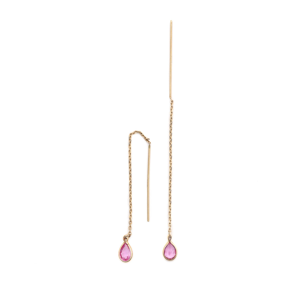 Indulge in the sophisticated allure of the ReMARKable Estate Collection by Marks Jewelers, an epitome of luxurious craftsmanship. These exquisite threader earrings are a testament to timeless elegance, fashioned from 14 Karat Yellow Gold. They showcase a stunning pair of 7mm pear-shaped lab-created pink sapphires, each stone carefully selected for its vibrant hue by our expert graduate gemologists. The unique threader design offers a modern touch, ensuring a comfortable and stylish fit that enhances your natural elegance.These earrings, a distinctive find within our Estate Collection, have been expertly refurbished by our master jewelers, offering a renewed life of beauty and sophistication. Whether marking a personal milestone or as a thoughtful self-gift, these earrings speak to the wearer's refined taste. As part of Marks Jewelers, they represent a harmonious blend of heritage and contemporary style, making them an essential addition to any jewelry collection.Embrace the unmatched quality and distinction that only Marks Jewelers can provide. Let these remarkable earrings become a cherished piece in your collection, perfect for any occasion and more than just an accessory-a true statement of elegance and individuality. Experience the enchantment of the ReMARKable Estate Collection and make every moment unforgettable. Add this unique treasure to your collection today and revel in its timeless charm.This item is an estate piece of jewelry, often one-of-a-kind, and has been previously owned. It has been refurbished by our master jewelers to be enjoyed again.