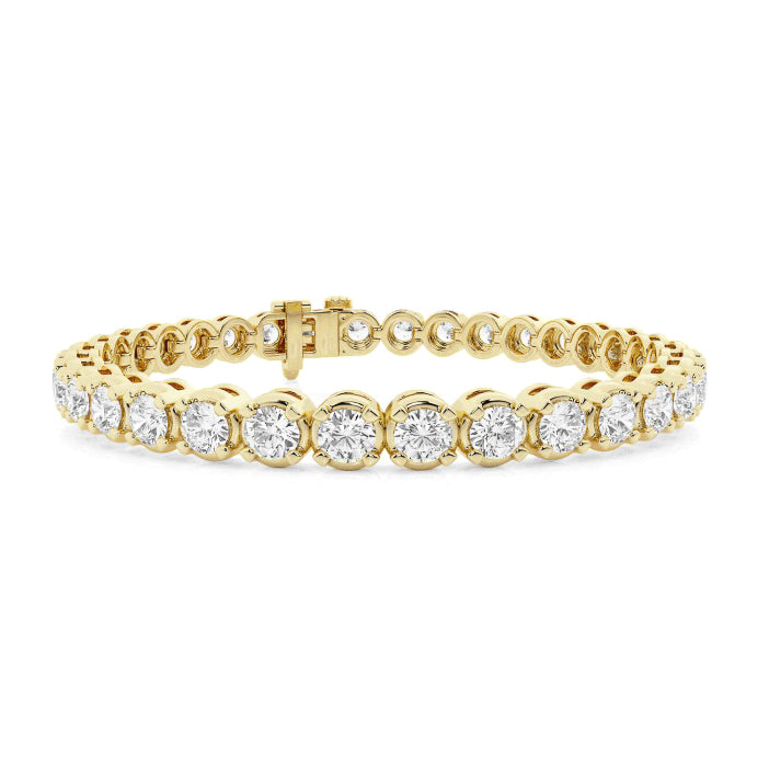 Discover the epitome of elegance with the Marks 89 Natural Diamond Bracelet, crafted exclusively by Marks 89 ReMARKable Designs. Since 1981, Marks Jewelers has been synonymous with excellence, and this luxurious tennis bracelet is a testament to our commitment to quality. Fashioned from lustrous 14 Karat Yellow Gold, it features 40 hand-selected round natural diamonds. With a remarkable total carat weight of 8.05, these diamonds exhibit a captivating I/J hue and I1 clarity, ensuring they dazzle with every movement. Designed for the discerning woman, the bracelet is equipped with a sophisticated hidden plunger clasp, offering both seamless wearability and security. Our graduate gemologists meticulously set each diamond, ensuring a unique piece that stands the test of time. This bracelet is more than just jewelry; it's a symbol of personal milestones and timeless beauty, ideal as a cherished gift or a well-deserved self-reward. Embrace the enduring allure of natural diamonds, which promise to remain a treasured heirloom for generations. Revel in the luxury and sophistication of Marks Jewelers' fine jewelry collection, where precision and passion converge. Celebrate your achievements with this exquisite diamond bracelet and let it be a radiant symbol of your aspirations. Elevate your elegance today.