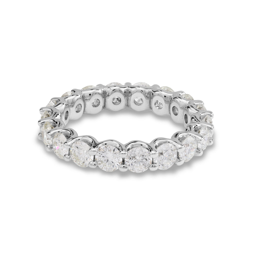 The Marks 89 Natural Diamond Eternity Ladies Wedding Band is a stunning testament to everlasting love and elegance. Crafted in 14 Karat White Gold, this exquisite ring features 19 meticulously set round diamonds, offering a total carat weight of 2.95. Each diamond boasts an H/I color and I1 clarity, ensuring a brilliant sparkle that captures the essence of timeless beauty. Designed in a standard ring size 7, it is a perfect choice for those who appreciate the allure of natural, earth-mined diamonds.