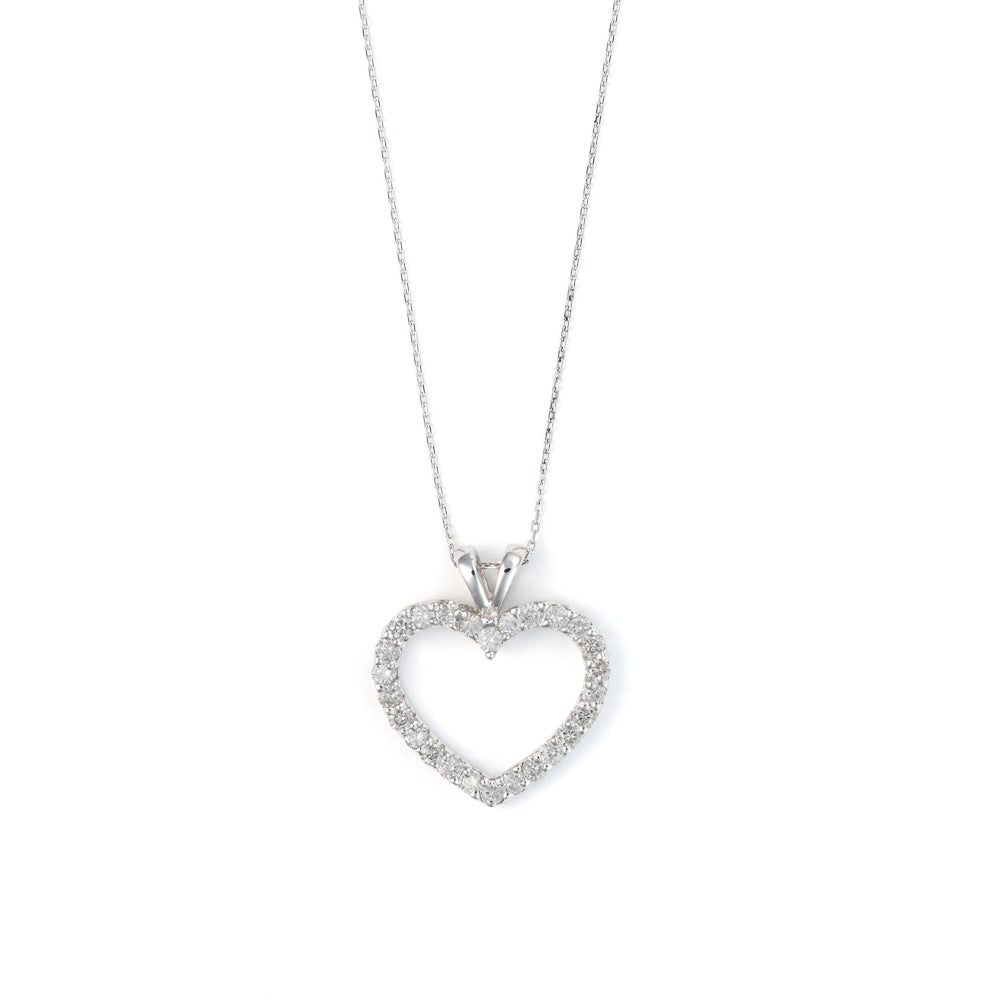 Immerse yourself in the timeless allure of the Natural Diamond Necklace from Marks Estate Department 2, a testament to luxury and elegance. This exquisite piece is expertly crafted in 14 Karat White Gold, offering a sophisticated canvas for its 26 round natural diamonds. Each diamond, with a J/K color grade and I1-I2 clarity, contributes to a total weight of 0.91 carats, ensuring a brilliant sparkle that captivates the eye. The necklace features a charming heart-shaped pendant, symbolizing romance and affection, which is beautifully complemented by an 18-inch diamond-cut cable chain. The secure lobster claw clasp provides both style and peace of mind. Priced at $1,617.00, with a retail comparison of $2,695.00, this necklace presents an exceptional value. As an estate piece, it carries a unique history, lovingly refurbished by expert jewelers to be cherished anew. Whether celebrating a special milestone or simply indulging in a personal treat, this necklace is more than an accessory; it's a piece of enduring beauty and emotional connection. Embrace the elegance of natural diamonds and the luxurious touch of white gold. Visit our store to claim this extraordinary piece and let its timeless charm inspire you for years to come.