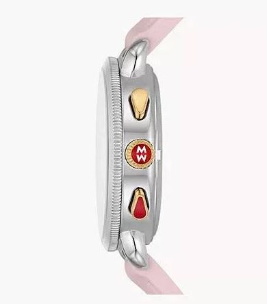 Discover the refined elegance and precision of the Michele Sport Sail Ladies Timepiece MWW01P000023, a stunning creation by the esteemed brand Michele. This captivating timepiece seamlessly marries sophisticated design with outstanding functionality, making it an indispensable accessory for today's discerning woman. Featuring a robust 38mm stainless steel case, the watch exudes both durability and chic style, perfect for any occasion. Its immaculate white dial is a visual delight, safeguarded by a sturdy mineral crystal that enhances its allure. At the core of this masterpiece lies a precision quartz movement, guaranteeing reliable timekeeping. The silicone band adds a layer of comfort and flexibility, effortlessly adapting to any adventure, whether it's exploring uncharted territories or savoring tranquil moments by the shore. With water resistance up to 5 ATM, this watch is designed to accompany you through life's varied journeys. Priced at $495.00, the Michele Sport Sail Ladies Timepiece transcends mere accessory status, symbolizing personal achievements and the celebration of life's cherished moments. Elevate your collection with this exquisite piece and let it become a treasured chapter in your life's narrative. Visit our store to experience this timeless elegance firsthand and bring a touch of sophistication into your world.