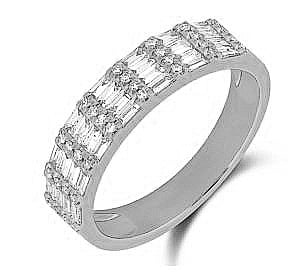 Celebrate the extraordinary journey of love with the ReMARKable Designs Natural Diamond Ladies Wedding Band by Marks Jewelers. Since 1981, we have been committed to exceptional craftsmanship and quality, and this stunning piece is a testament to our legacy. Expertly crafted in gleaming 14 Karat White Gold, this elegant band features a captivating combination of 28 baguette diamonds totaling 0.53 carats and 32 round diamonds totaling 0.11 carats. Each diamond, with a clarity of SI1 and a dazzling G/H color grade, is handpicked by our skilled graduate gemologists to ensure a sparkle that resonates with the depth of your love story.