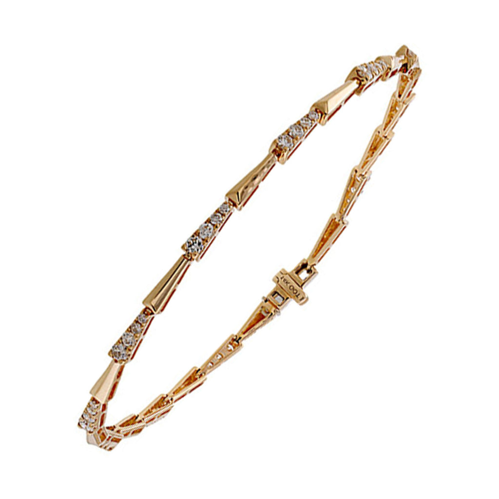 This bracelet's stunning yellow gold hue beautifully complements the natural sparkle of the diamonds, making it a versatile accessory for any outfit or occasion. Whether you're attending a formal event or simply want to add a touch of glamour to your daily ensemble, this bracelet is the perfect choice.
