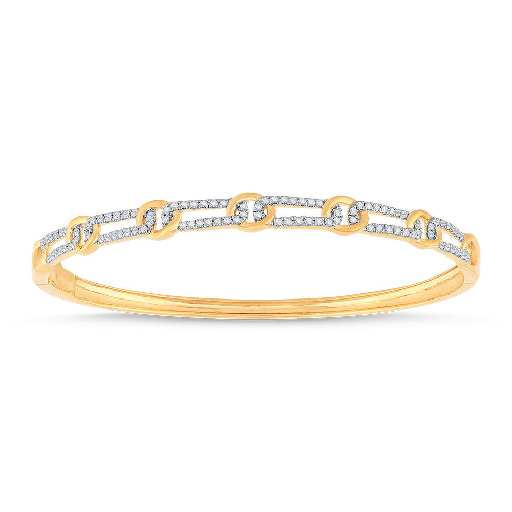 Discover the exquisite charm of the Natural Diamond Bracelet by SDC Creations, a masterpiece that embodies elegance and sophistication. Crafted in lustrous 14 Karat Yellow Gold, this bracelet is a testament to the impeccable craftsmanship and quality that SDC Creations is renowned for. Featuring an impressive total of 102 round natural diamonds, each meticulously chosen for its exceptional brilliance and fire, this bangle-style bracelet boasts a total diamond weight of 0.75 carats. These natural diamonds, born of nature, ensure that each bracelet is a unique work of art. The seamless design is further enhanced by a hidden plunger clasp, providing both security and a flawless finish, making it ideal for daily wear. With a length of 7 inches, the bracelet elegantly drapes over the wrist, adding a touch of timeless grace to any ensemble. Priced at $5950.00, this piece is not only a luxurious addition to your collection but also a wise investment in enduring beauty. Whether you're celebrating a personal milestone or seeking the perfect gift to express your appreciation, this bracelet captures the essence of refinement and style. Elevate your jewelry collection with this remarkable creation from SDC Creations. Embrace the allure of natural diamonds and order now to experience the epitome of elegance.