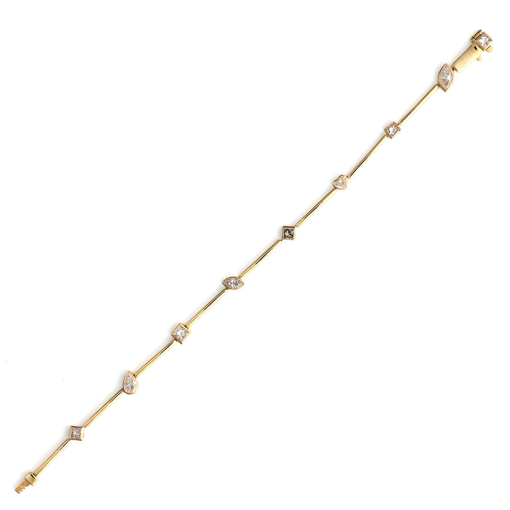 Discover the enduring elegance of the ReMARKable Designs Beautiful Not Broken Collection by Marks Jewelers. This stunning natural diamond bracelet, skillfully crafted from 14 Karat Yellow Gold, is a testament to timeless beauty and unrivaled craftsmanship. Featuring nine uniquely shaped diamonds, with a total carat weight of 2.32, each stone is handpicked by our expert graduate gemologists to ensure the utmost quality and radiance.
